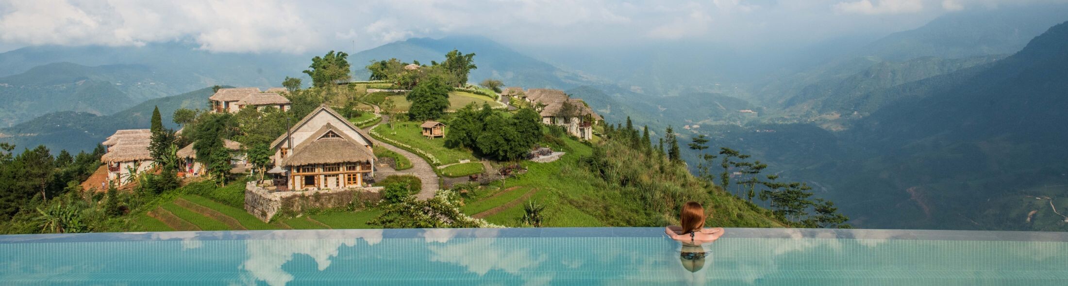 Mellem rismarker og bjergtoppe dybt inde i Hoang Lien National Park i Nordvietnam ligger Topas Ecolodge i 1.000 meters højde med en spektakulær 360 graders panoramaudsigt over Sapadalen.