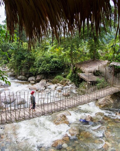 - Vandretur mellem bjerge og vandfald, og frokost hos junglens Red Dao-minoritet