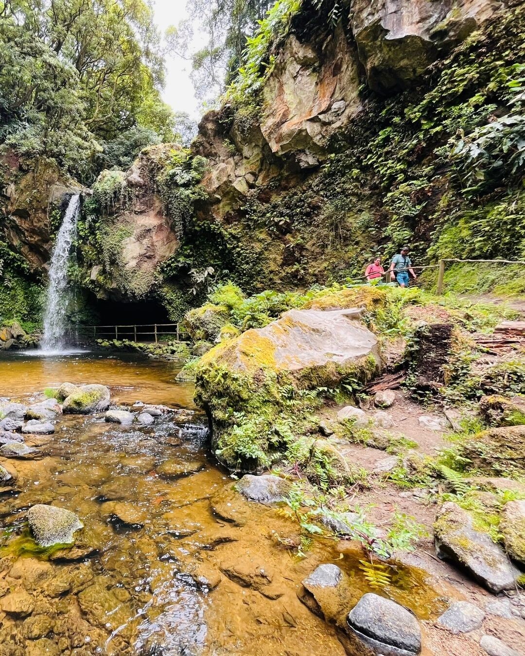 - Stien fører os videre igennem skoven til de gamle ruiner af vandmøllen Felix, videre til Teofilos vandfald, Grutas vandfald og Ørretbrønden.