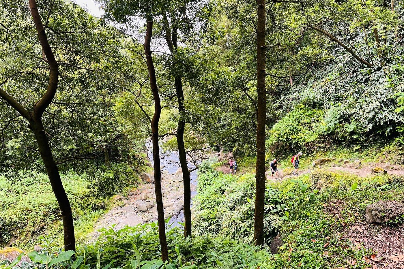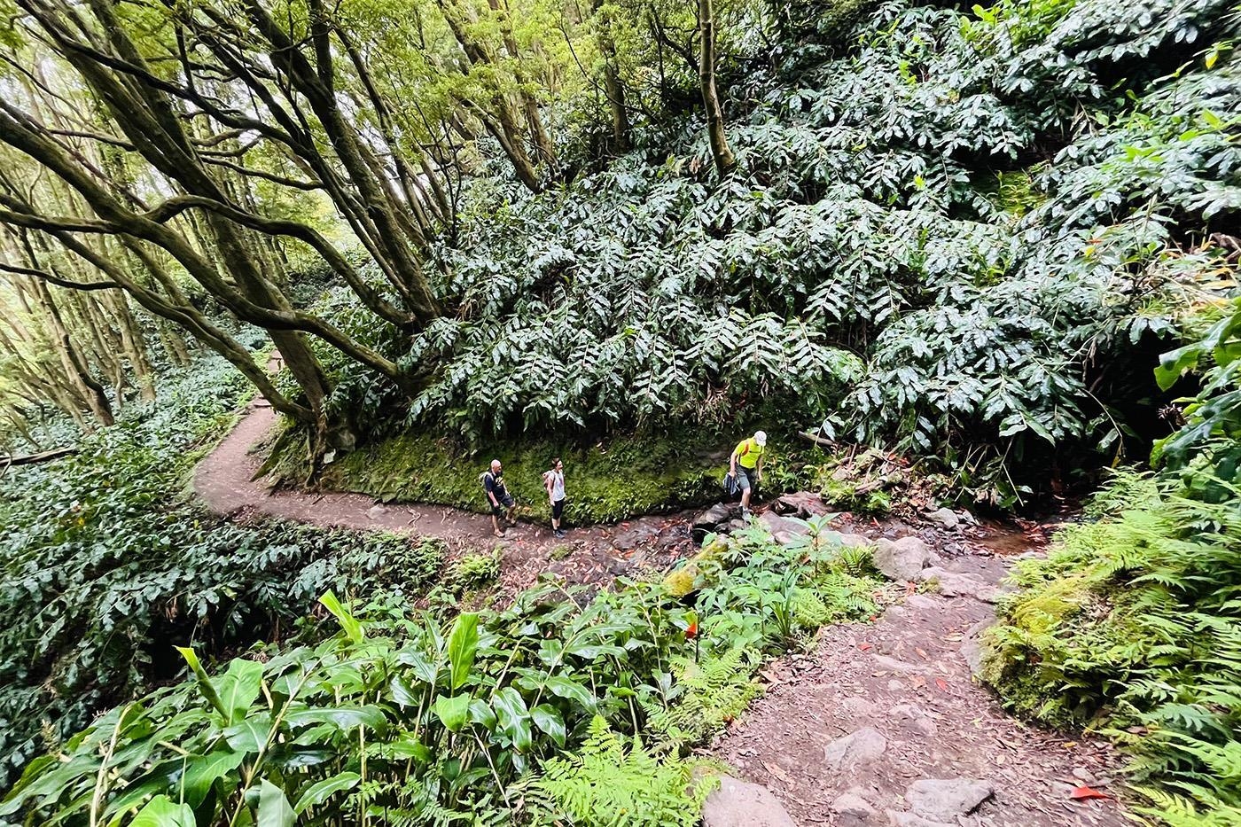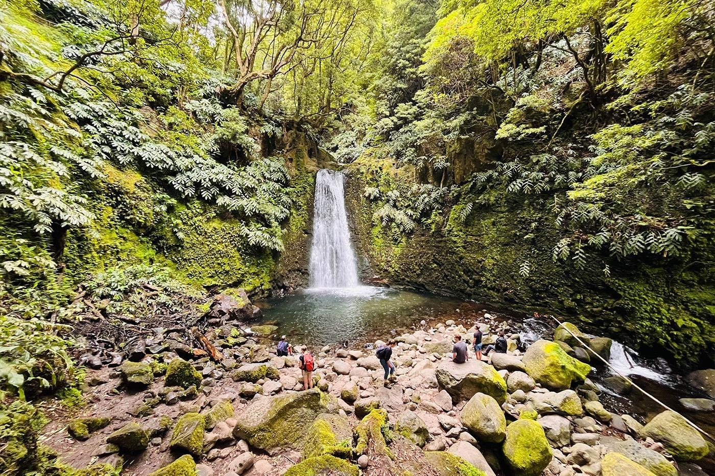 Vi kører til Lomba de São Pedro i kommunen Ribeira Grande, hvor vi skal vandre langs den nordlige kyst af São Miguel. Det er en ideel måde at starte vores uge på Azorerne, da dagens vandrerute byder på både lokalsamfund, natur, vandfald og kystlinje. Vores lokale guide, der er med os på alle vandredagene, fortæller om landbrugsproduktionen og om vandmøllerne, der blev brugt i dette område. Vi får i det hele taget en god fornemmelse af det lokale liv på São Miguel, da ruten til en start fører os igennem den lille landsby, Fenais da Ajuda, og giver indblik i, hvordan livet leves på disse kanter. Vi stopper og nyder den smukke kirke São Pedro, og ikke så længe derefter kommer vi til vandfaldet Homem. Stien fører os videre igennem skoven til de gamle ruiner af vandmøllen Felix, videre til Teofilos vandfald, Grutas vandfald og Ørretbrønden. Herefter har vi et smukt stræk langs kysten, med udsigt til Atlanterhavet.