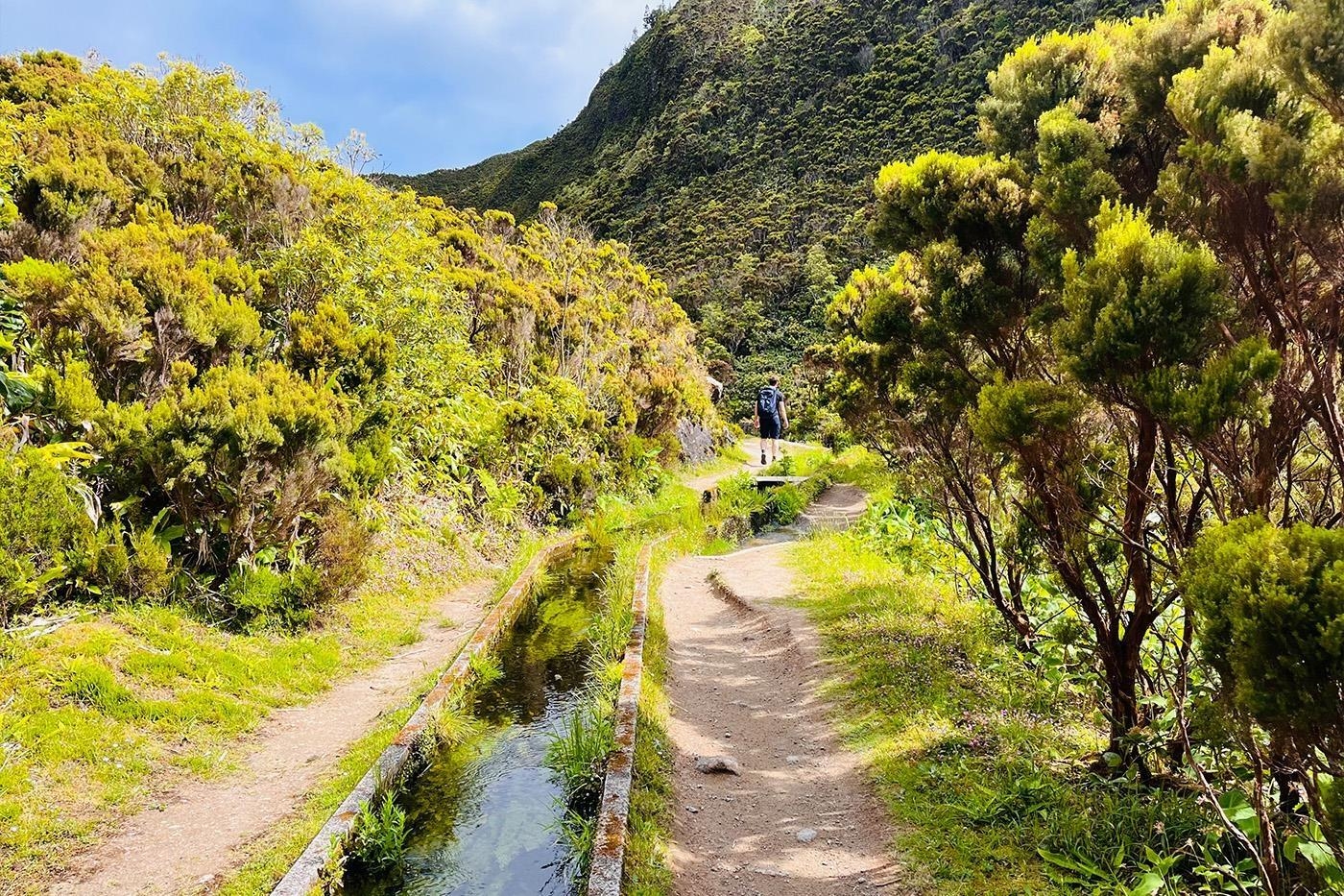 - Vandring til São Pedro-vandfaldet gennem en frodig dal i Fialal da Terra