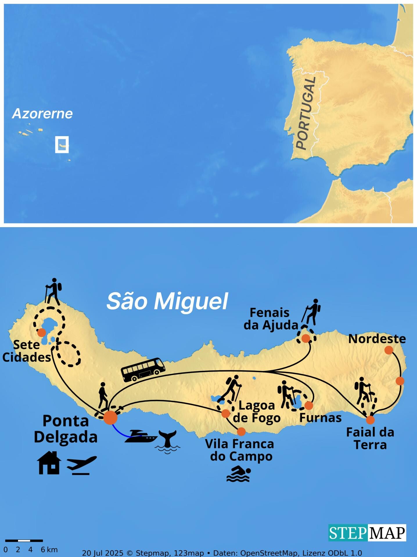 Med denne tur har vi ikke stræbt efter at ’komme derud, hvor ingen andre kommer’, da det ikke er muligt på en populær ferieø som Azorerne. I stedet har vi gjort os umage for at udvikle en varieret vandre- og oplevelsesferie, hvor vi kommer til at se og opleve det flotteste, øen byder på, på en aktiv måde.