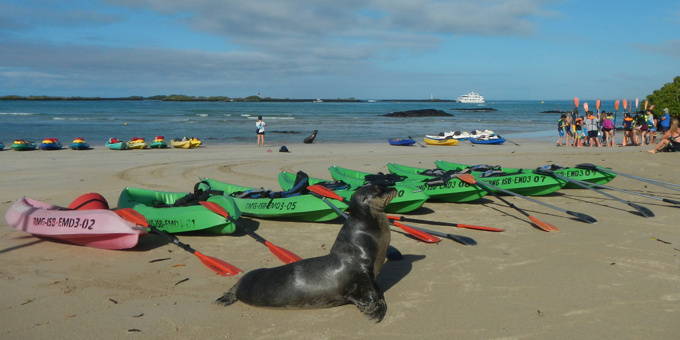 Allerede inden vi går i vandet med maske og snorkel på, er der lagt op til oplevelser. Et par søløver suser legesygt omkring os og kigger nysgerrigt op med jævne mellemrum, som spørger de: 'Kommer I snart?'.