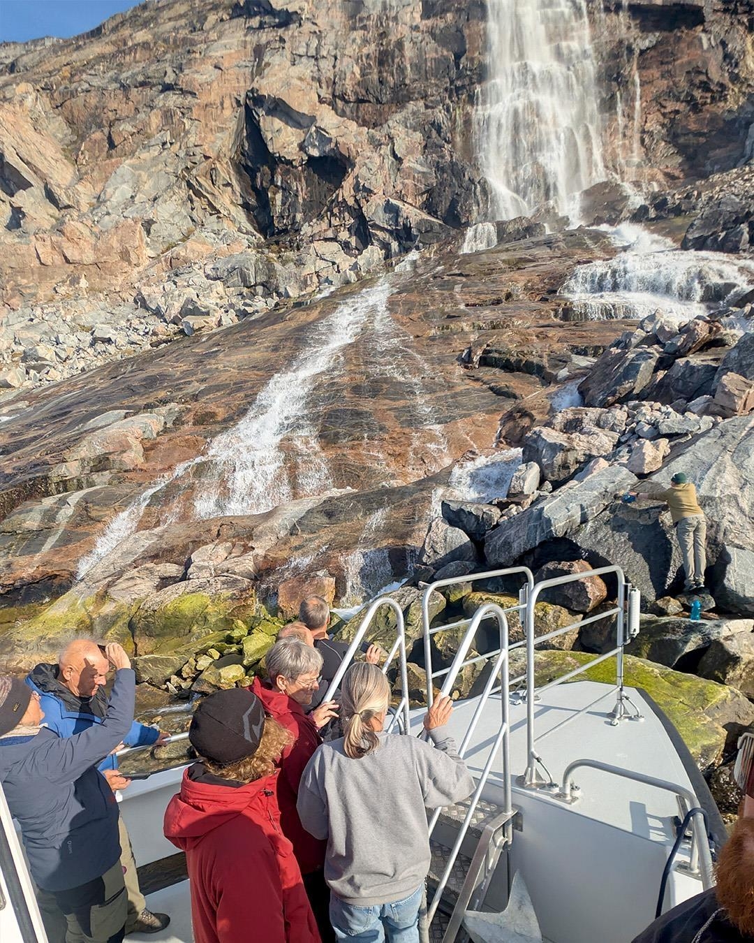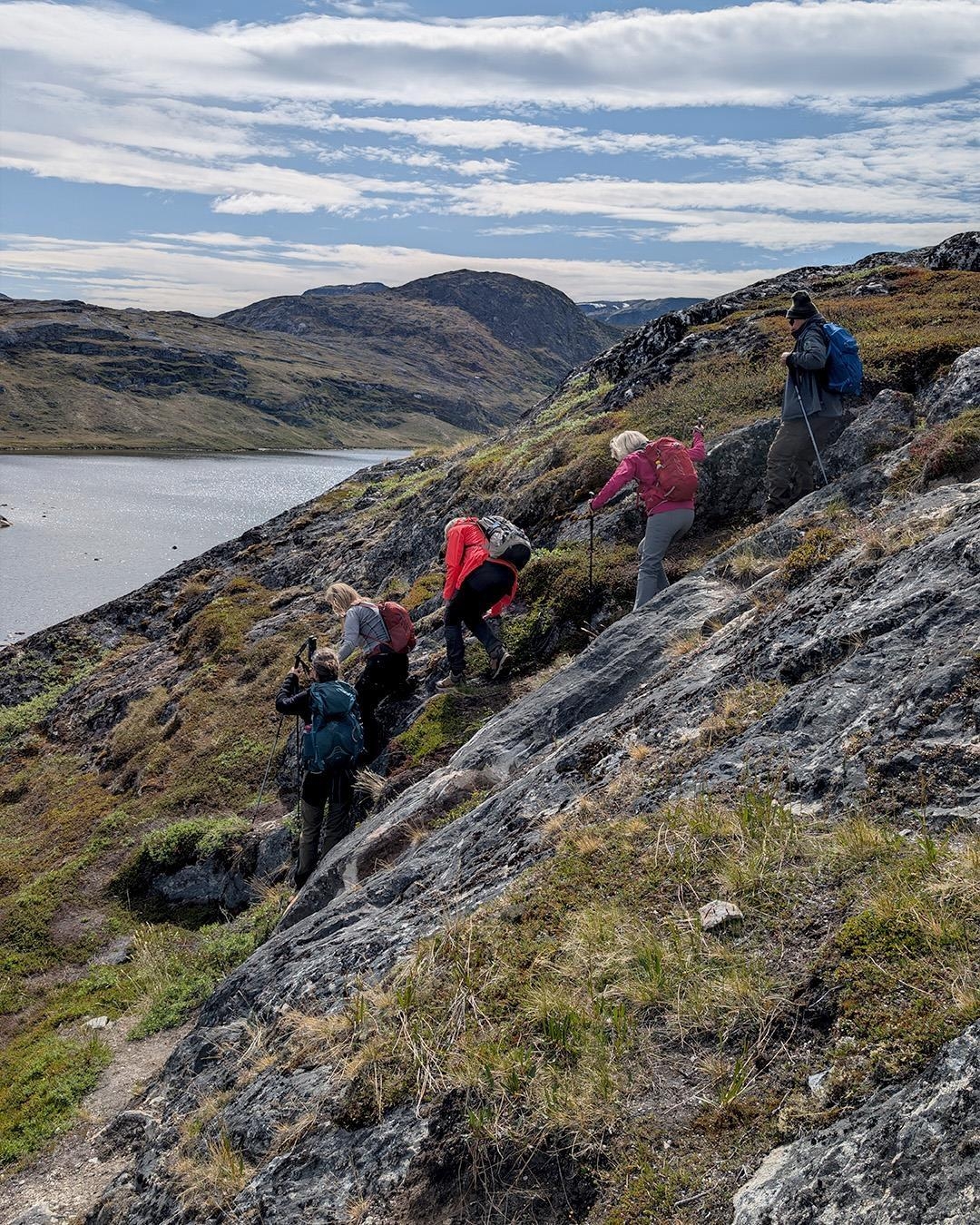 Udenfor byen venter en helt særlig flora med en række unikke arktiske arter, der trives her. Diskoøens geologi adskiller sig markant fra Grønlands fastland, da området er præget af tidligere vulkansk aktivitet. Turlederen vil arrangere en ca. 4 timers vandretur ud i det fantastiske område mod Kuannit, hvor vi får mulighed for at beundre de imponerende basaltformationer, som lavaen har krystalliseret sig i. Hele området er utroligt frodigt, med neon-grønt mos og store, smukke kvanplanter, der trives i de ensvarme kilder. Her nyder vi vores medbragte madpakker, inden vi på tilbagevejen går vi forbi det brusende vandfald i Røde Elv.