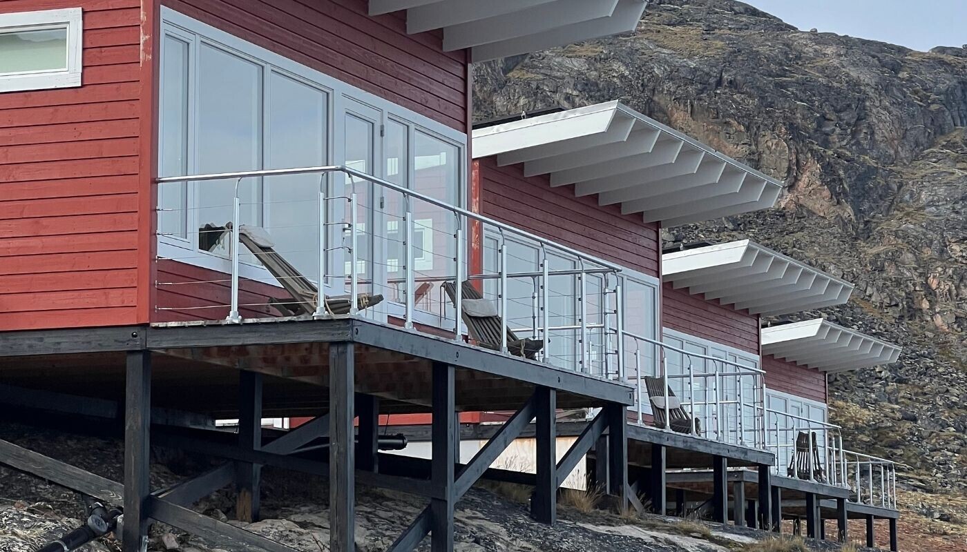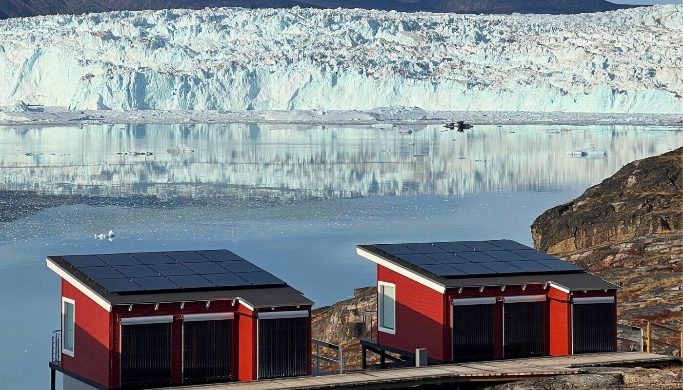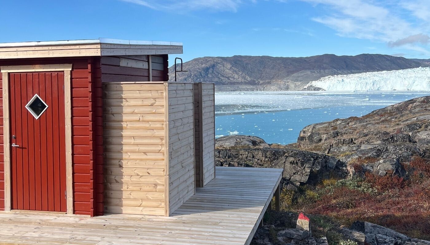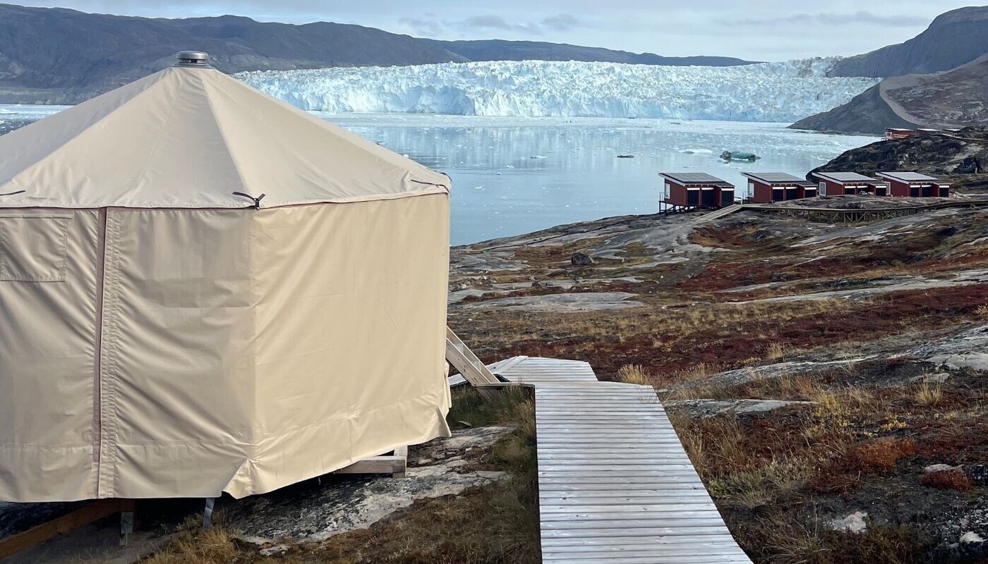 Med fjeldlandskab som baggrund, Eqi bræen som forgrund og Indlandsisen i horisonten, ligger alle lodgens 14 hytter + 6 Luksus Vildmarkstelte unikt placeret og med optimeret panoramaudsigt til bræen fra såvel hytten som terrassen.