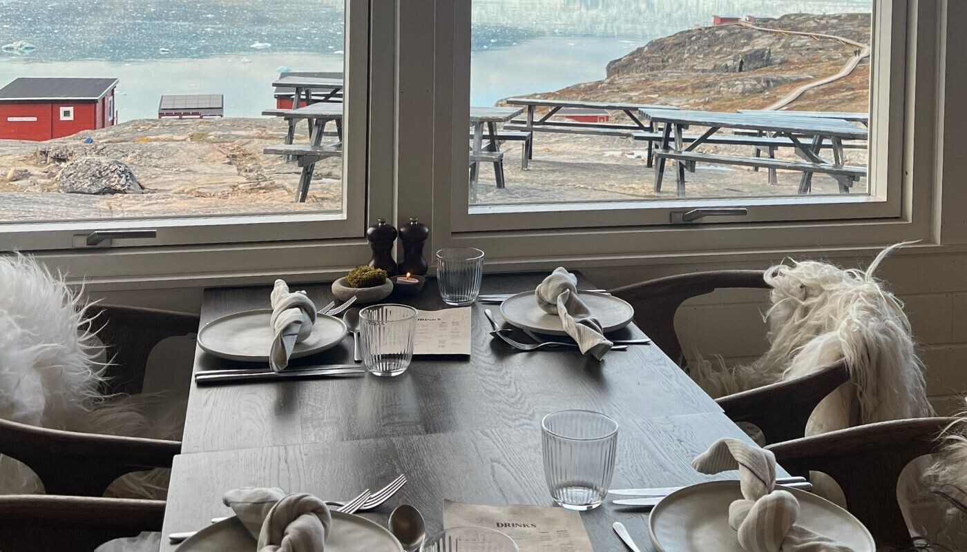 For overnattende gæster i Glacier Lodge Eqi er alle måltider inkluderet i opholdet, og de nydes i Café Victor. I tilknytning hertil er vandskyllende toiletter og brusebad.