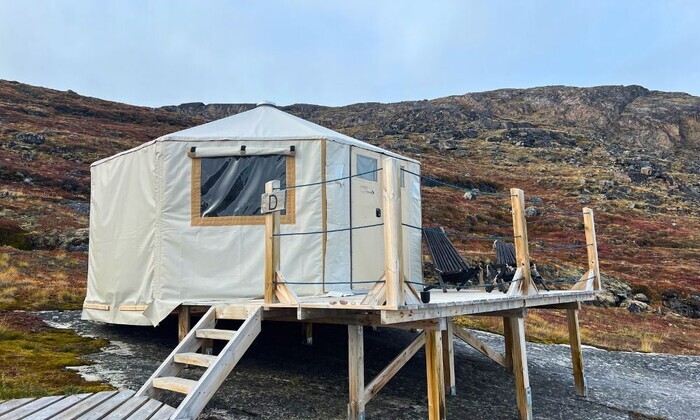 Alle Luksus vildmarkstelte er placeret med en fantastisk udsigt til havet og Eqi gletsjeren. Alle Luksus vildmarkstelte er placeret på en platform, som fungerer som terrasse.