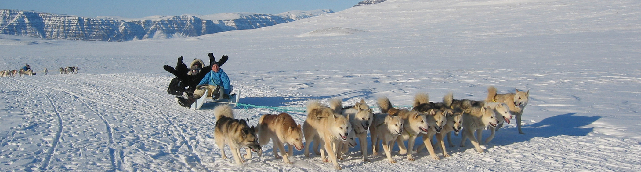 - Når der køres på is, vil man nu og da passere sprækker i isen. Det er vigtigt at du bliver på slæden (medmindre slædekusken giver specifik, anden information), da det oftest er lettere at passere disse sprækker siddende på slæden.