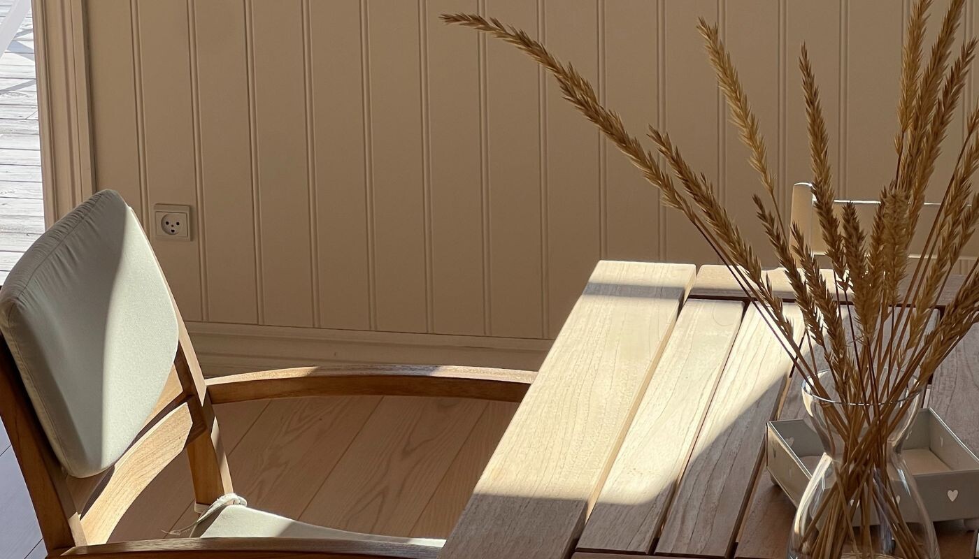 I vores guest house, som åbnede i 2021, bor du i en stor bjælkehytte med moderne indretning.