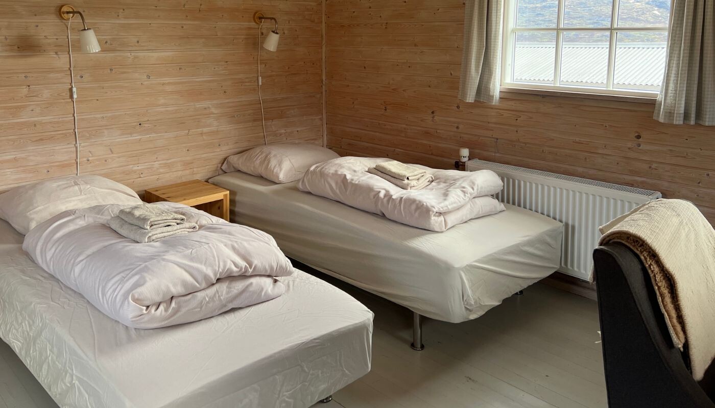 Villaen i Igaliku er perfekt, hvis du rejser sammen med familie eller venner og gerne vil have god plads og hjemlige rammer. Her får du 2 soveværelser med dobbeltsenge, et åbent køkken-alrum, stort badeværelse og en hems med madrasser – et hyggeligt sted for børnene.