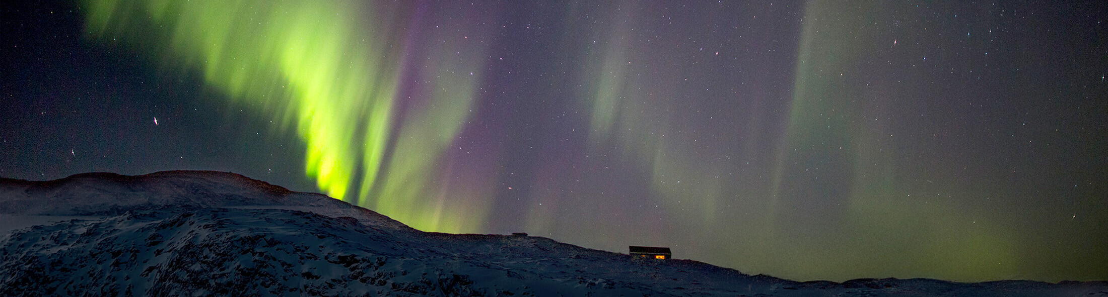 Senere på dagen forlader vi byen og sætter kursen mod vildmarken – på snescooter gennem det sneklædte bagland. Turen ender ved en afsidesliggende hytte med panoramaudsigt over fjeldene. Her kan du slappe af i varmen, tage på sneskovandring eller bare nyde stilheden og nærværet midt i Grønlands uberørte vinterlandskab.
