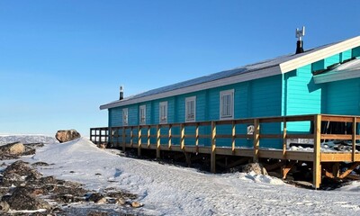 Den afsidesliggende hytte er enkelt indrettet med fællesrum og små værelser – uden elektricitet og bad, men med varme og udsigt til det snedækkede landskab. Her får du en autentisk oplevelse af det grønlandske vinterliv, hvor stilhed og fællesskab er i centrum.Læs mere om hytten.