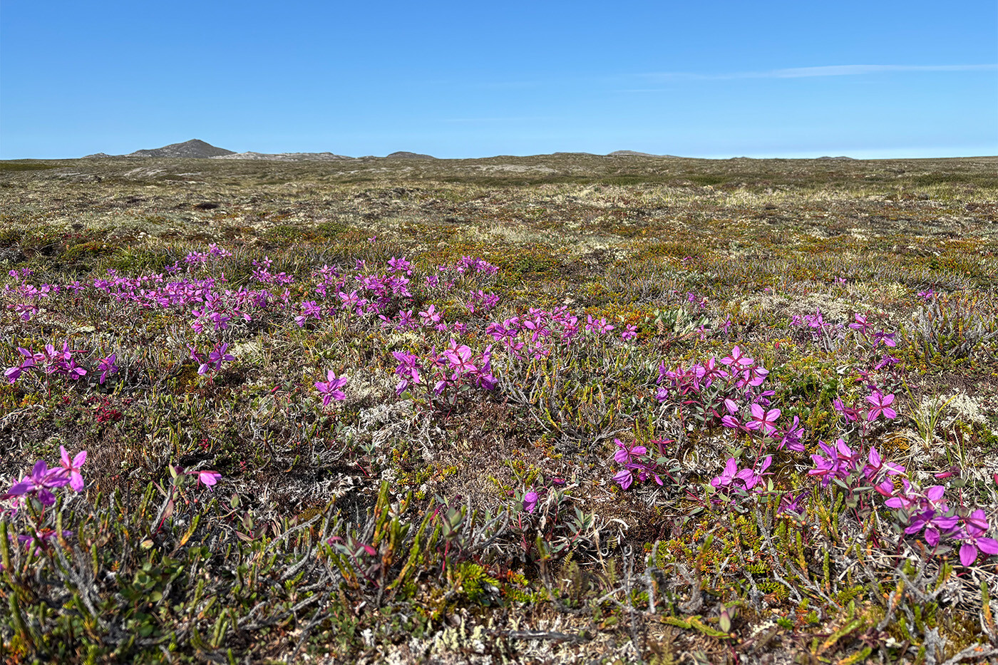 - Farverige fjeldsider med arktiske blomster, planter og urter i tundralandskabet
