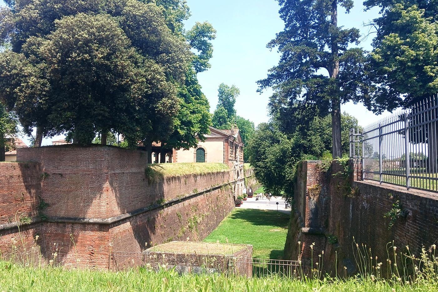 Vi krydser floden og er nu på cykelstien, der fører os ad grusvej helt ind til Lucca og bymuren. Muren er 4 km. lang og er 20-30 meter bred, så vi kan køre nogle kilometer rundt på den, inden vi faktisk kan trække cyklerne gennem en sektion af gangene, som findes i selve volden. Nu befinder vi os pludselig udenfor det enorme bygningsværk og kan her se hvilken kæmpe opgave det har været at bygge muren som et uigennemtrængeligt forsvarsværk. Vi kører igen gennem en af portene og parkerer cyklerne inde i den gamle bydel. Det er efterhånden frokosttid og vi kan på egen hånd gå rundt i byen og finde et sted til frokost.