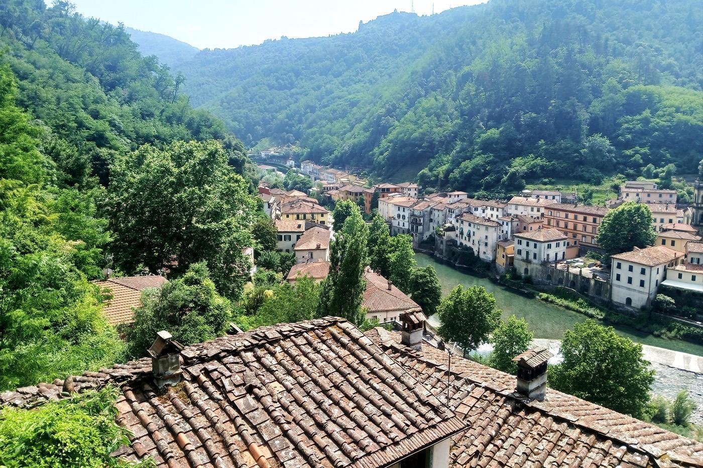 Fra hotellet kører vi til højre og kører i den friske morgenluft de første 6 km. til Bagni de Lucca. Vi krydser floden et par gange undervejs og drejer fra centrum af byen op i bjergene mod vest. Starten på opstigningen er gennem hårnålesving der leder os op i det grønne landskab, hvor vi ind imellem finder skygge under de store træer. Snart flader vejen ud og udsigten åbner sig over det grønne tæppe af vegetation. Trafikken er meget begrænset og vi kan nyde stilheden og fuglesangen på den lille asfaltvej. Vi passerer kun et par landsbyer, hvor den sidste Boveglio markerer starten på nedkørslen mod Villa Basilica dalen, hvor vi har udsigt til en række af fabriksbygninger der ligger langs floden.