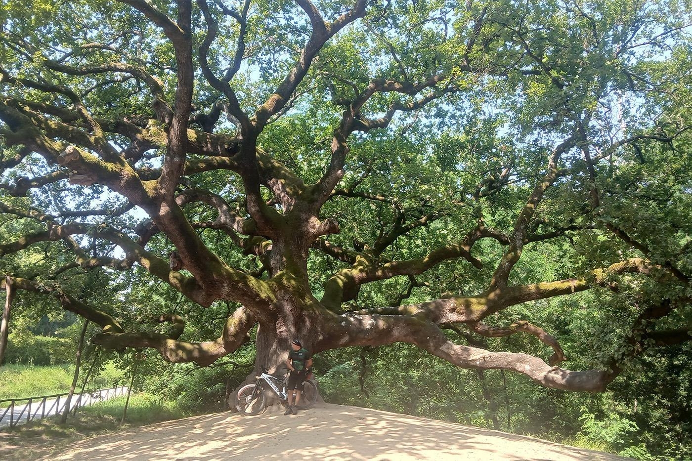 Vores tur går i dag mod Lucca og vi kører den første time ad kendte veje til Ponte Moriano og videre ad Via de Ville. Vi kører nu lidt længere ud i det relativt flade landskab og stiler mod dagens første stop, Montecarlo. Turens første lille stigning går ad grusvej op mod byen, hvor vi halvvejs holder ind under et enormt egetræ, som er et bevaret nationalt klenodie. Træet udstråler livskraft med grønt løv på alle de store grene på trods af sine 600 år.