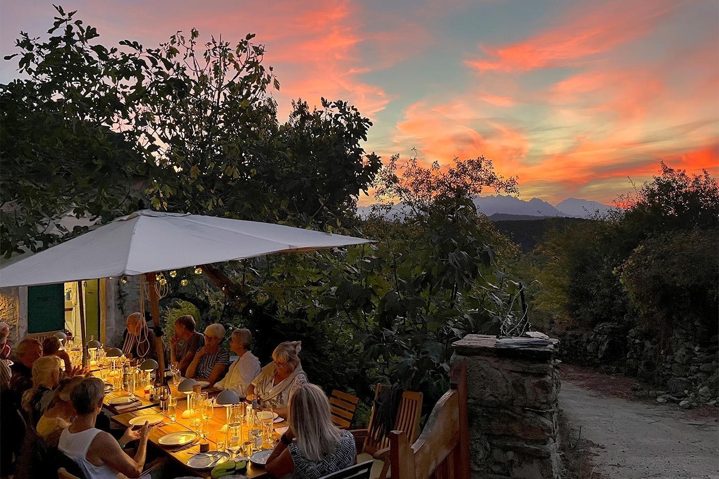 Vi nyder aftenen sammen med en afskedsmiddag på terrassen.