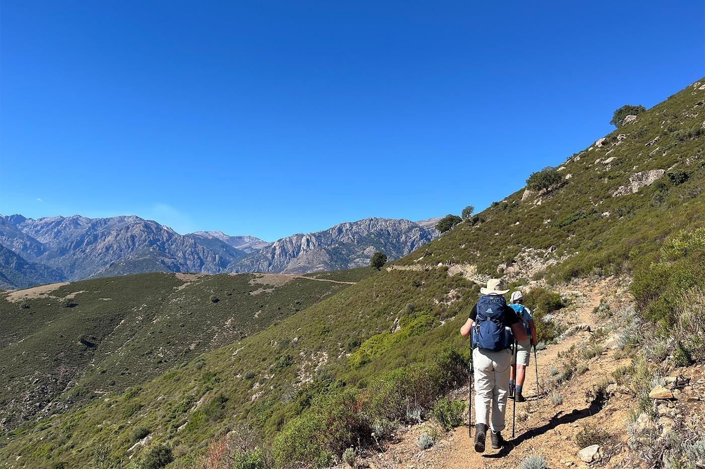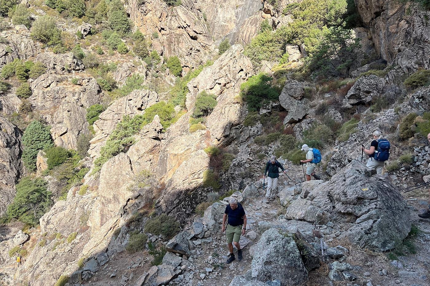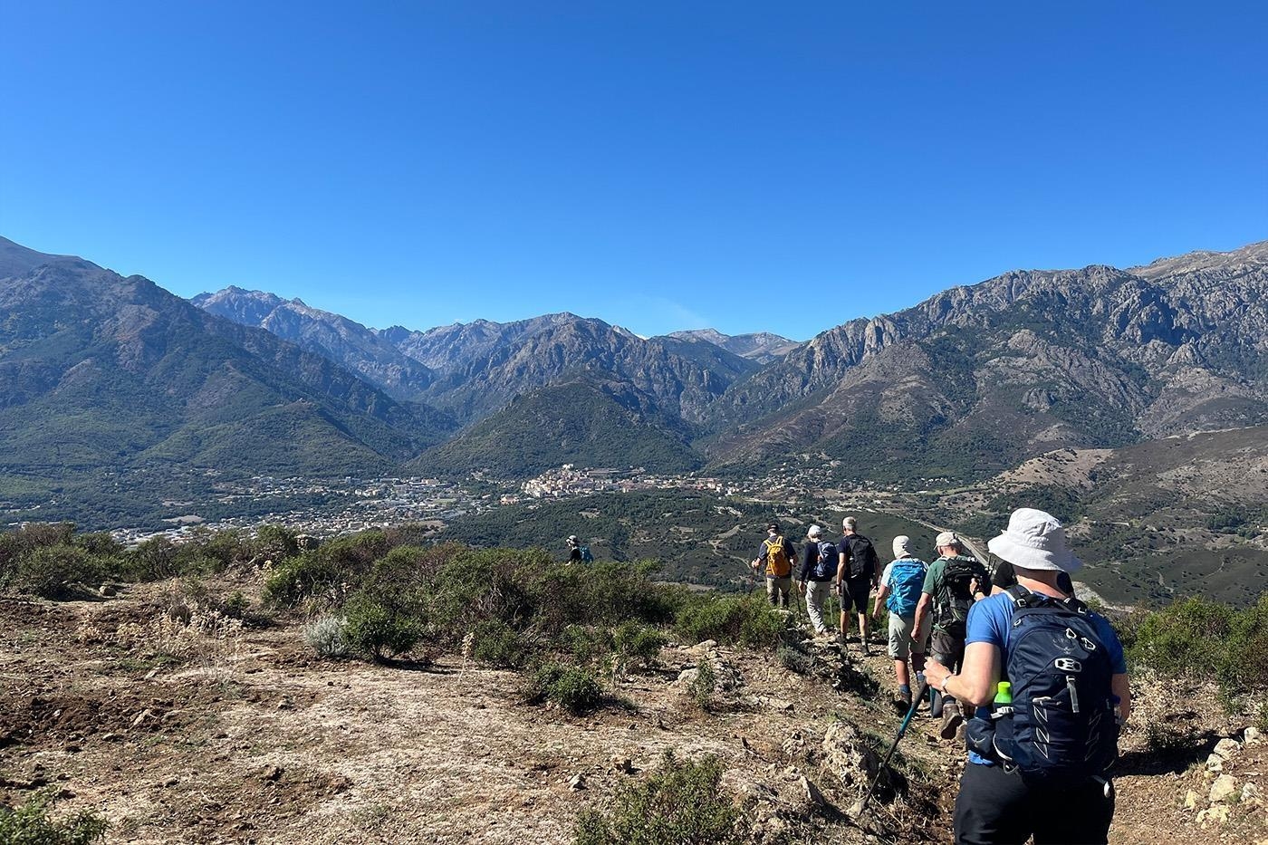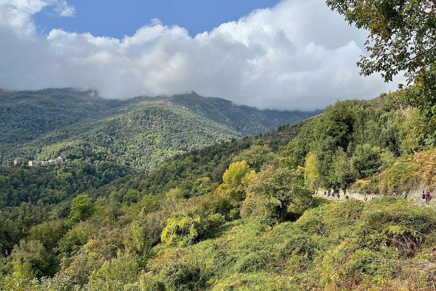 Turen tager udgangspunkt i den smukke bjerglandsby Santa Lucia di Mercurio. Her følger vi en gammel sti ned til Corte. Vi kommer til at gå nedad det meste af tiden. På vejen går vi noget af tiden i skovstykker med kastanjetræer og ege. Vi har en spektakulær udsigt ud over til Monte Cinto og Monte Rotondo – Korsikas højeste og næsthøjeste bjerg. Vi bevæger os ned i lavlandet, hvor vi nu kan se ned over byen Corte.