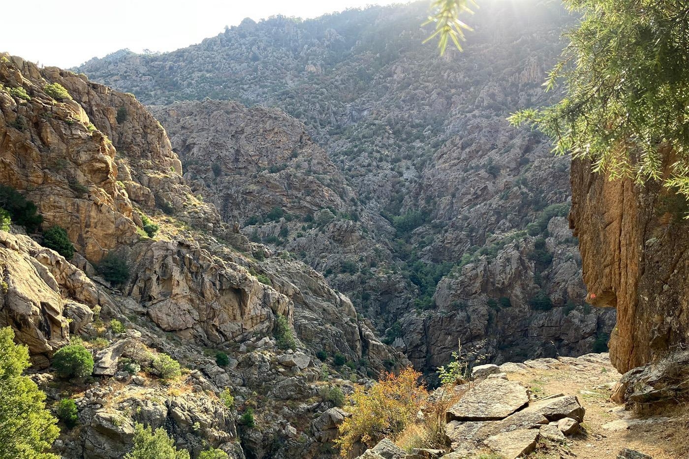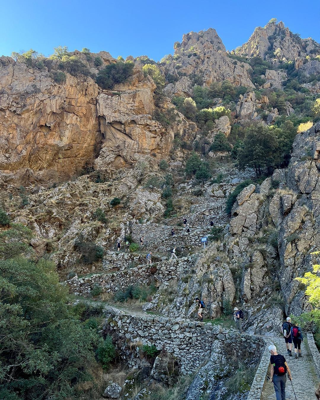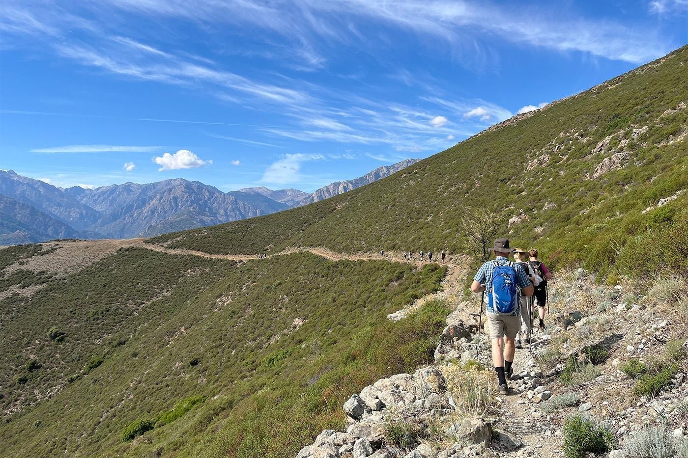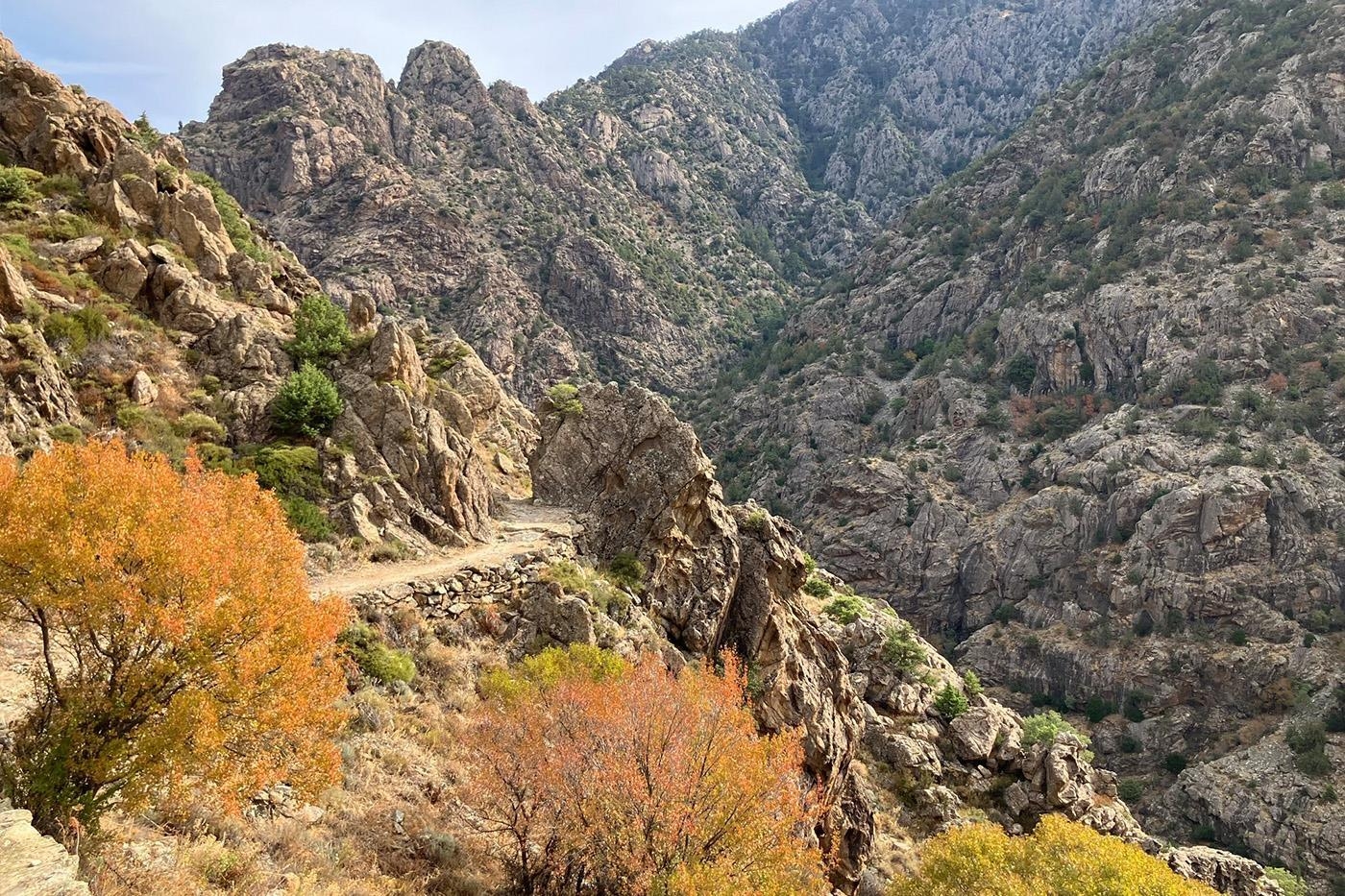 Turen tager udgangspunkt i den smukke bjerglandsby Santa Lucia di Mercurio. Her følger vi en gammel sti ned til Corte. Vi kommer til at gå nedad det meste af tiden. På vejen går vi noget af tiden i skovstykker med kastanjetræer og ege. Vi har en spektakulær udsigt ud over til Monte Cinto og Monte Rotondo – Korsikas højeste og næsthøjeste bjerg. Vi bevæger os ned i lavlandet, hvor vi nu kan se ned over byen Corte.