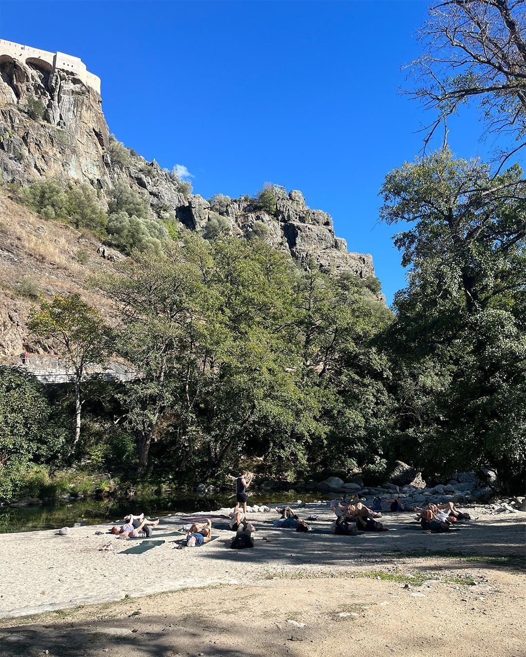 Vel nede i byen, venter busserne på os ved floden. Her venter der en skøn omgang yoga og afspænding med flodens lyde som baggrund.
