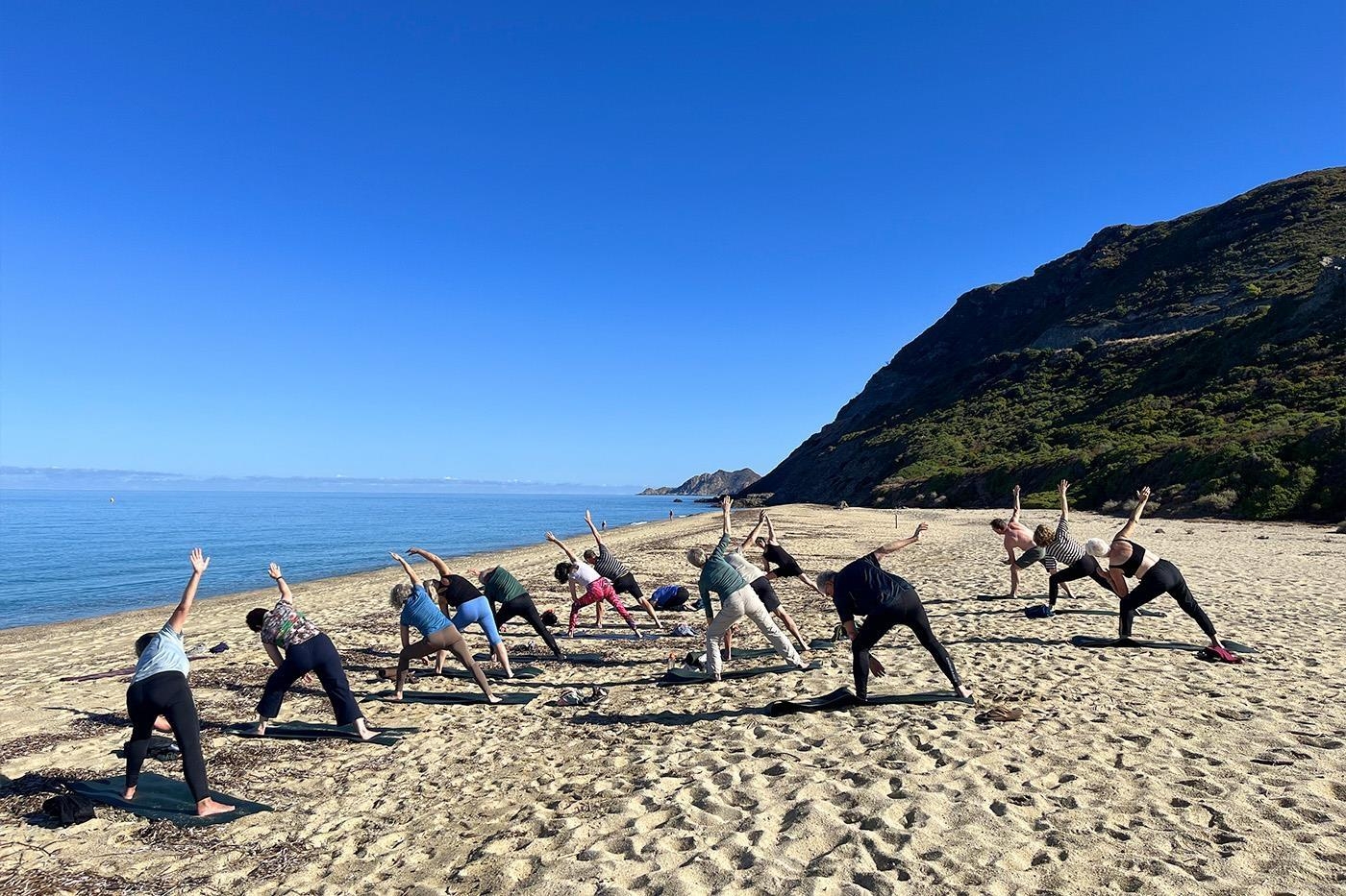 Dagens sluttes af med en omgang Restorativ Yoga på stranden, inden vi samles og spiser på en af byens restauranter.
