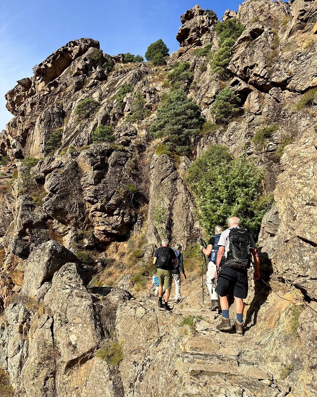 Efter Vinyasa Yoga og morgenmad kører vi mod en af turens smukkeste vandreruter ind i Niolu-dalen, som vi kan ane de fjerne silhuetter af fra husets terrasse. En times kørsel bringer os til dalens port; Scala di Santa Regina-kløften. Her starter dagens vandring, hvor vi følger den gamle vej ind i dalen. Stien er placeret på den nordlige side, et godt stykke over Golo floden, som strømmer lystigt i kløftens bund. Turen fortsætter med udsigt over de dramatiske klippesider, indtil kløften åbner op og vi begynder at kunne fornemme selve Niolu-dalen. Vi slutter vi den lille landsby Corscia, hvor busserne holder klar for at køre os til Calaccuia.