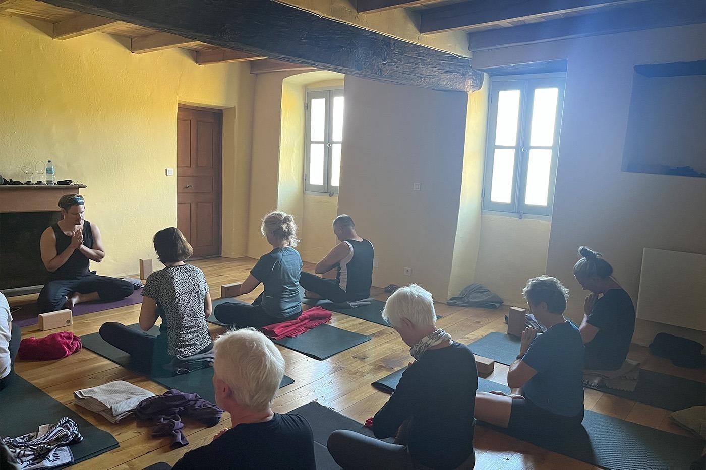 Tilbage i huset er tid til fordybelse og en yogasession med Restorativ Yoga i løbet af eftermiddagen. Aftensmaden indtages i nabobyen hos den pensionerede overbetjent Francois og hans charmende kone.