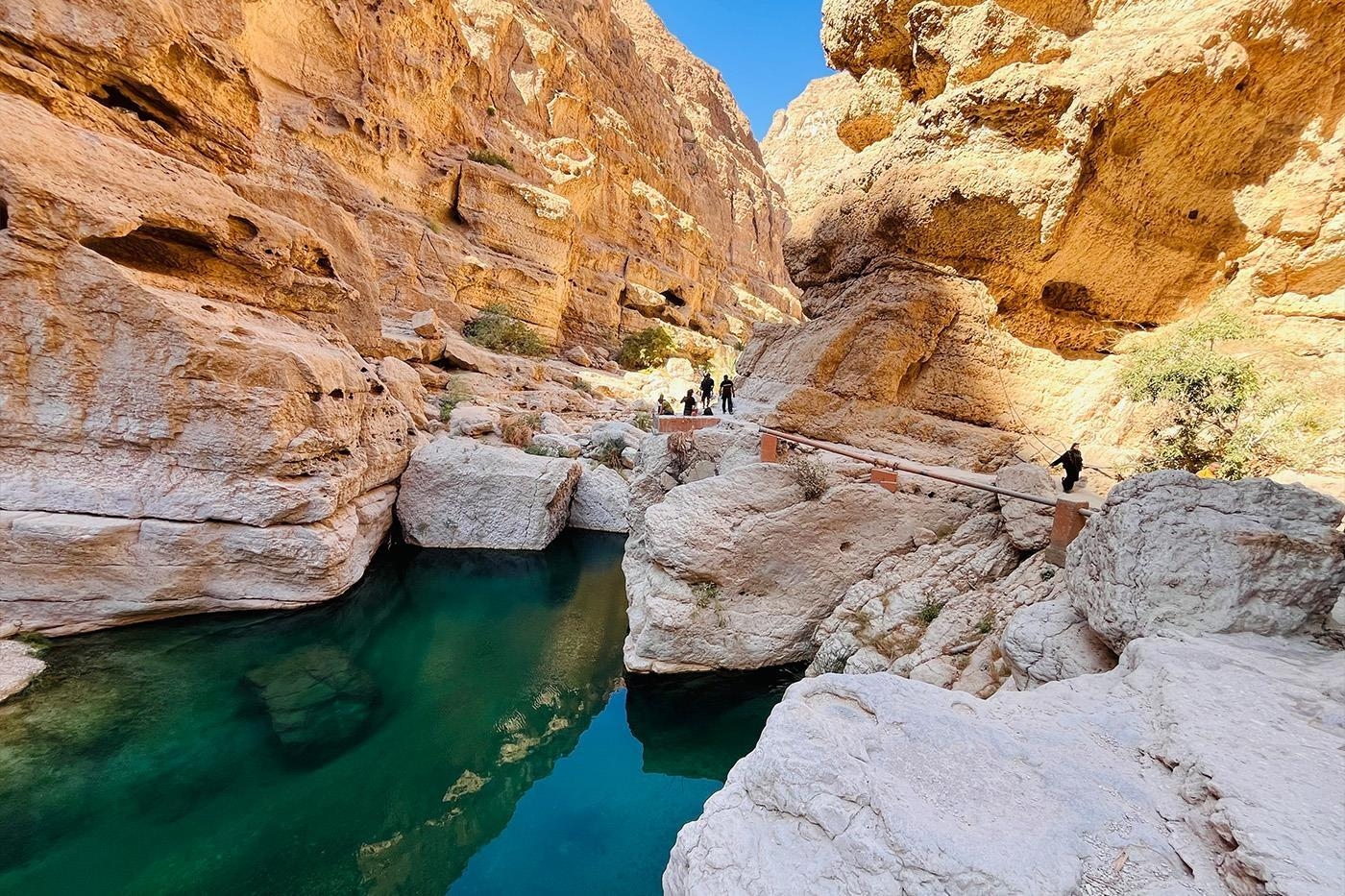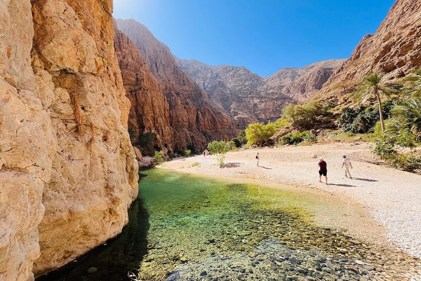 - Vandring og blågrønne pools og vandfald ved Wadi Shab