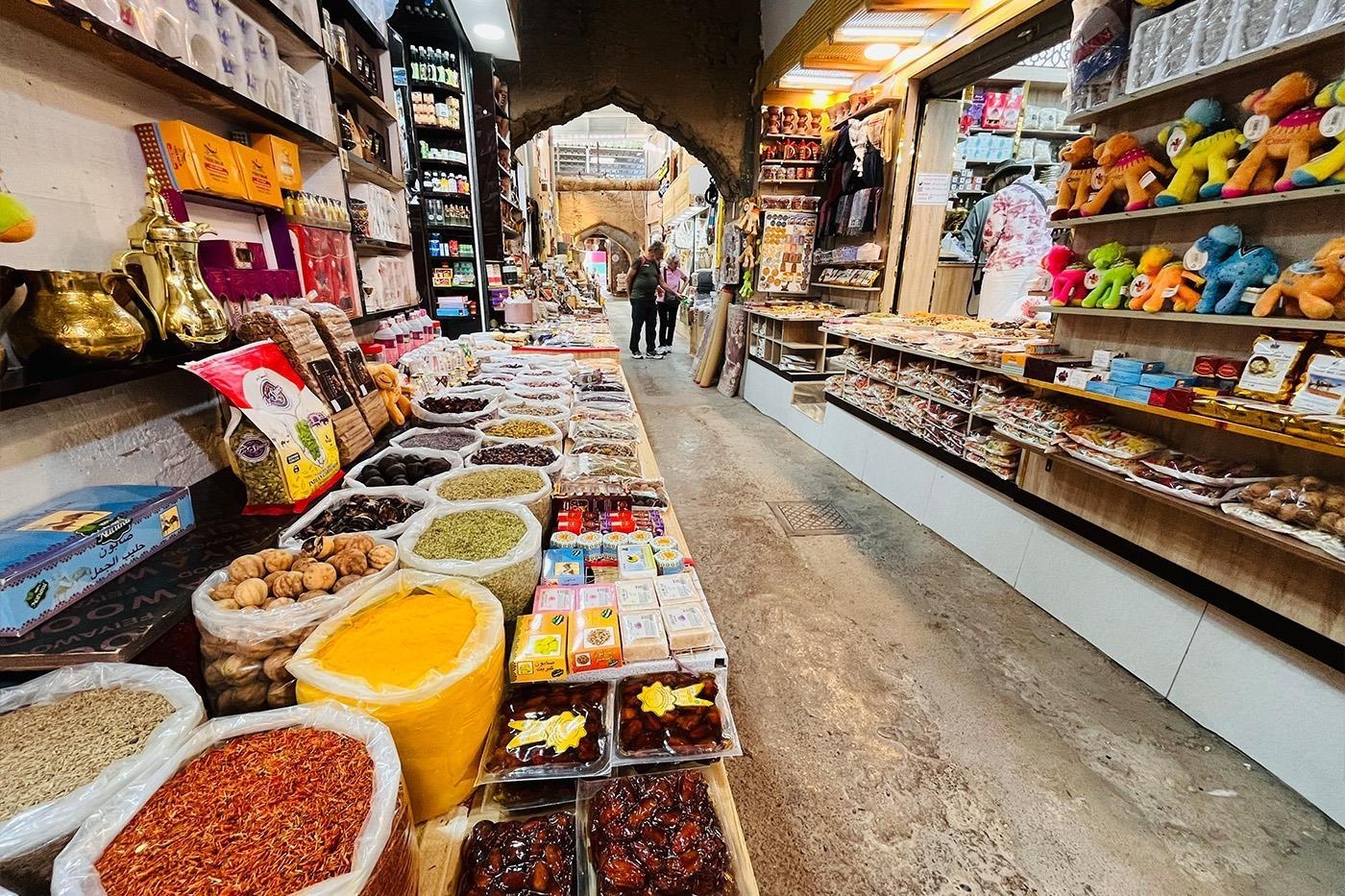 - Souq: Traditionelt marked med boder, fx krydderier, tekstiler og lokale varer.