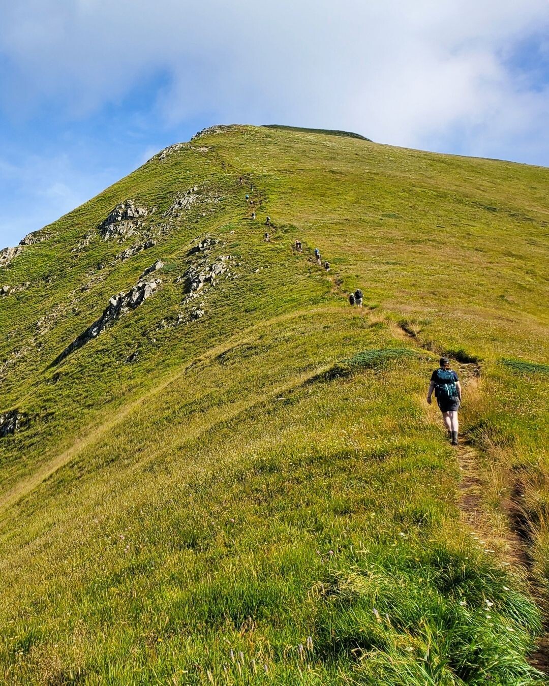 - En stejl stigning fører os over en græsklædt bjergskråning og endeligt til toppen af Monte Tondo.