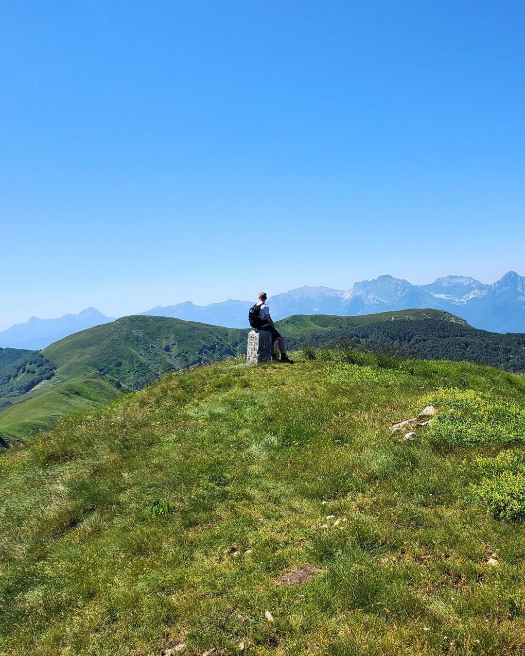 - Efter at have nydt udsigten på toppen går vi på bjergets kam og passerer Monte Polla samt Colle Brancia. Herefter følger en nedstigning mellem blåbær og enebær indtil vi rammer skovbrynet.