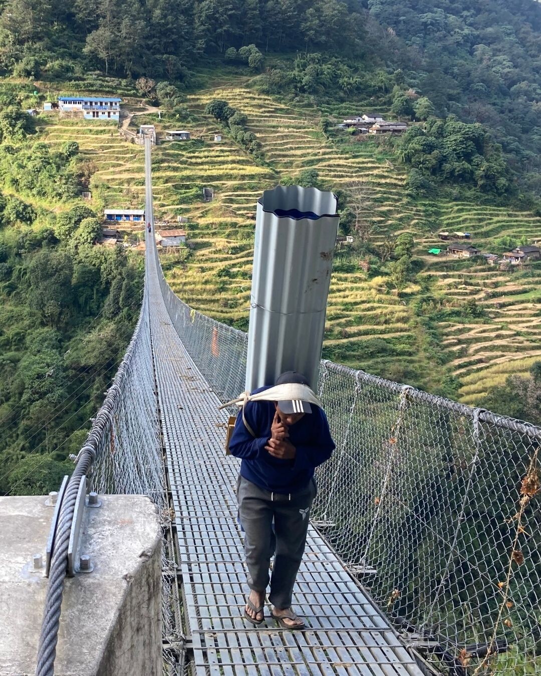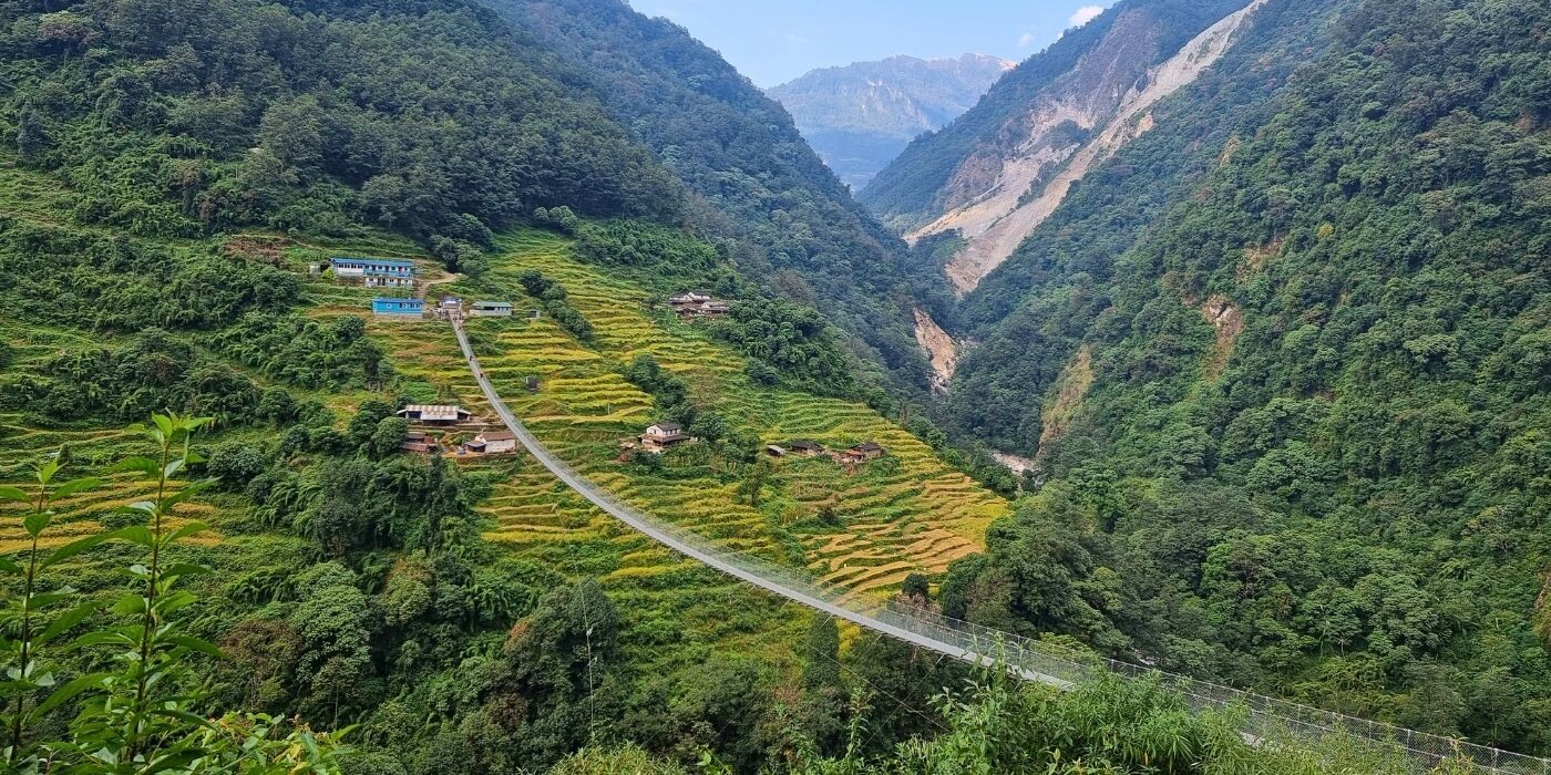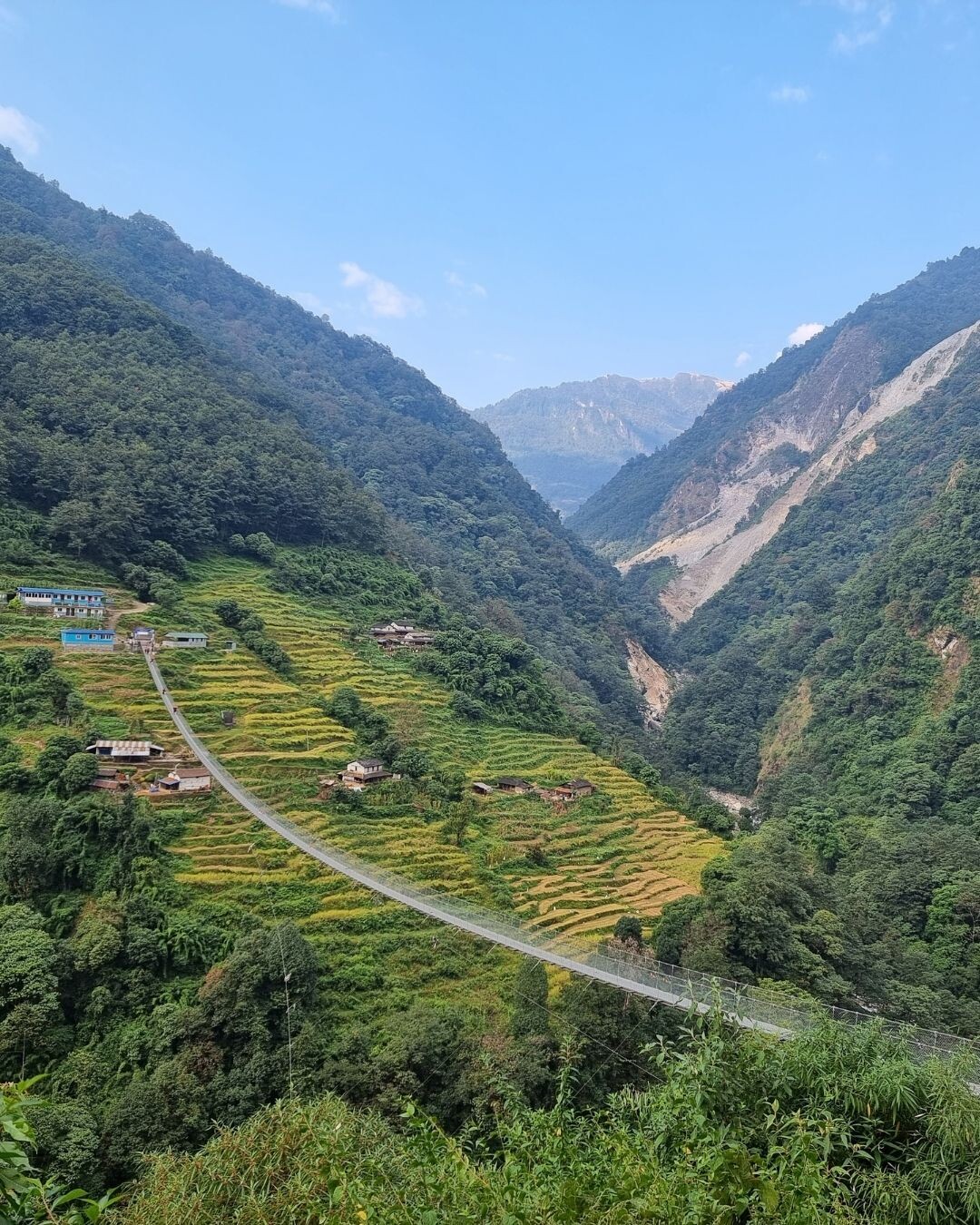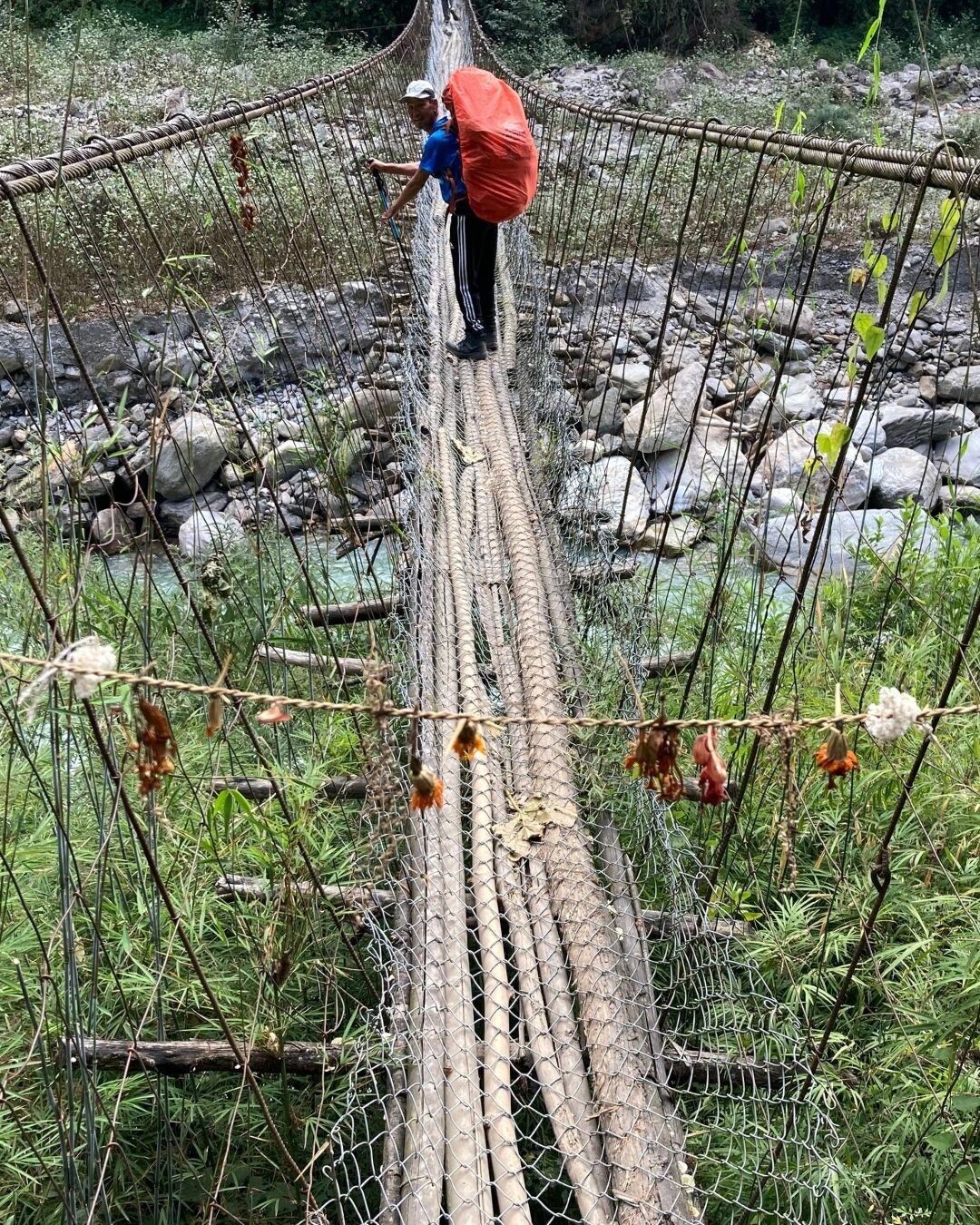 - Vi passerer ud på eftermiddagen Tirkedungha, hvor hængebroen markerer begyndelsen på "trappernes trappe", der fører os igennem Ulleri landsbyen et godt stykke oppe.