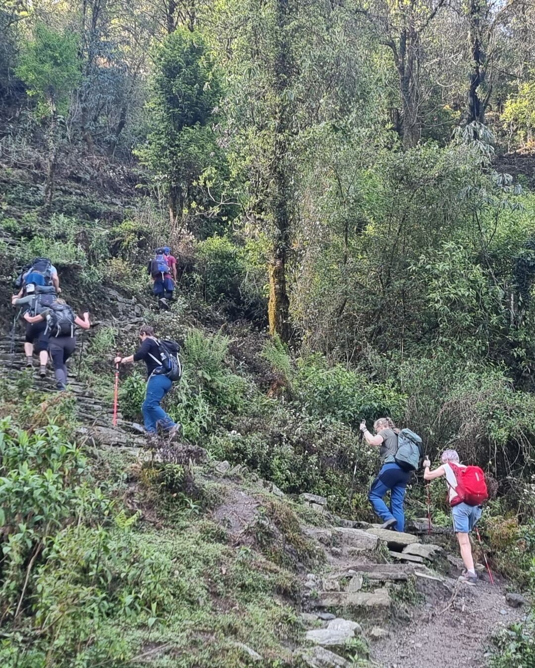 I dag bevæger vi os fra de sidste trapper op gennem frodig skov og videre til Ghorepani og Deurali-passet.
