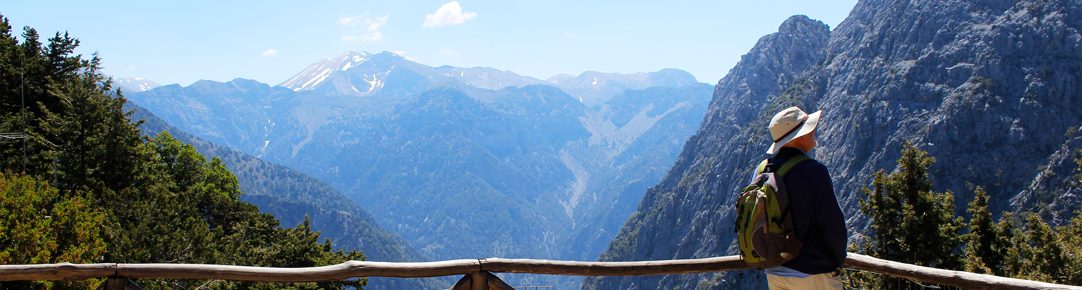 Fra morgenstunden checker vi ud fra vores værelser og pakker vi bussen. Vi kører ca. halvanden time ind i hjertet af De Hvide Bjerge. En storslået udsigt venter os og de over 2.000 meter høje bjerge danner et imponerende sceneri. Vandreturen starter på Omalós-sletten, et stort fladt landområde i 1.100 moh., hvor geder græsser om sommeren, bier sværmer omkring bistaderne og oliventræerne står spredt rundt på markerne.