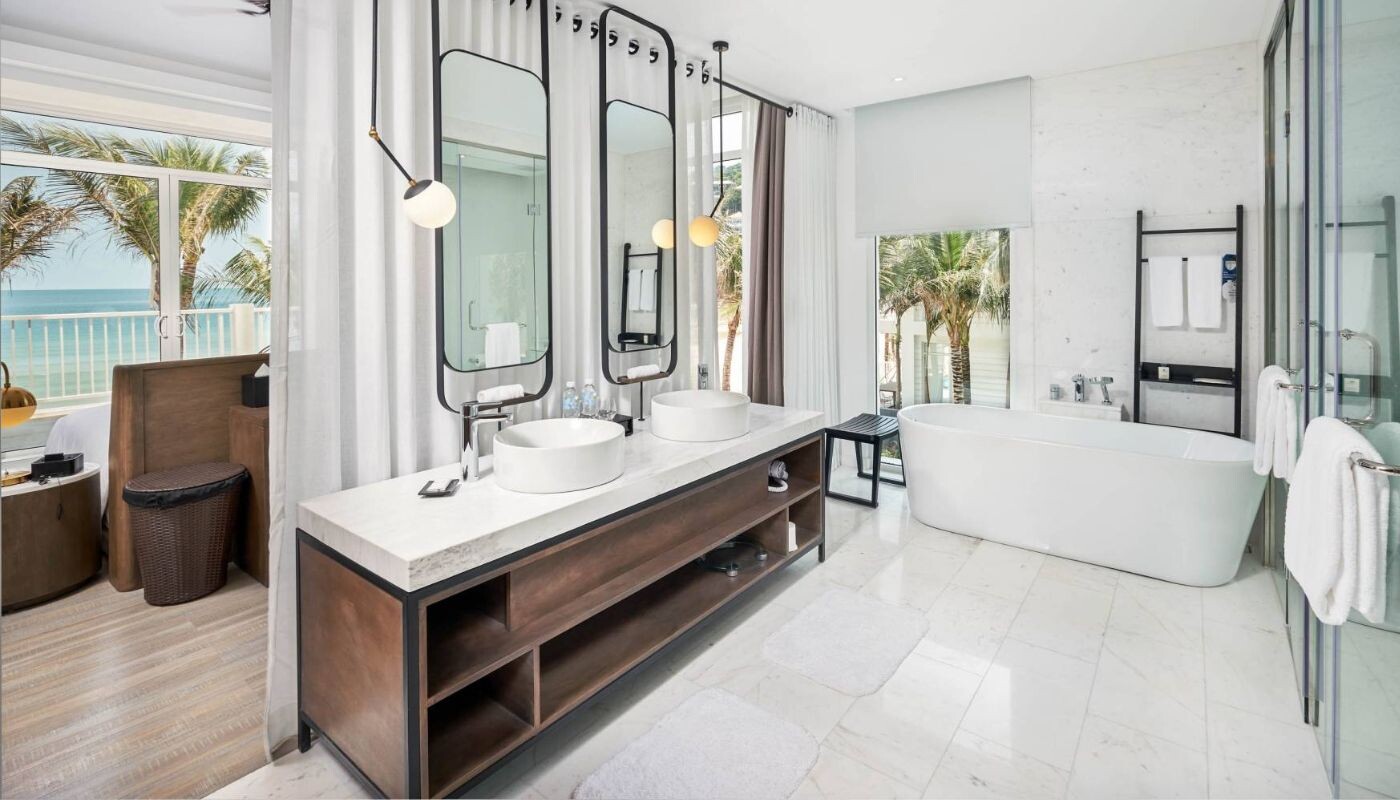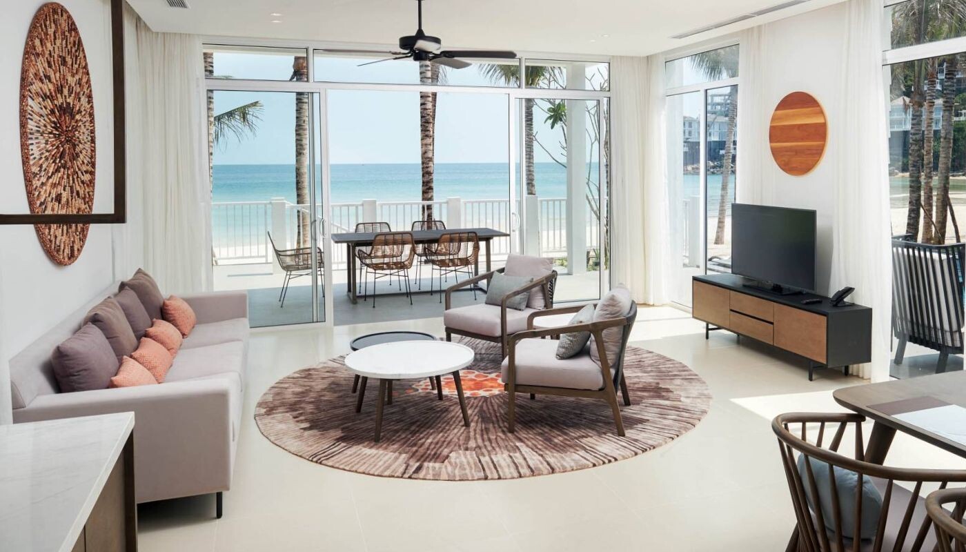 Premier Village Phu Quoc Resort ligger på den sydlige spids af Phu Quoc-øen og er omgivet af havet på begge sider. Resortet har 215 rummelige villaer, alle med privat pool og udsigt til havet. Her findes to strande, et stort poolområde samt spa- og fitnessfaciliteter placeret på en bakketop.