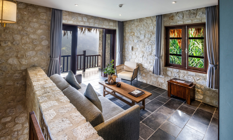 Deluxe Suites er lyse og rummelige boliger på 60 m², fordelt på to etager og skabt til gæster, der ønsker lidt ekstra plads og komfort. Suiterne har en indbydende sofazone og en balkon, hvor man kan nyde udsigten til bjergene. Der er te- og kaffefaciliteter, espressomaskine og en eco-bar, mens badeværelset byder på både keramisk badekar og regnbruser. Suiterne har desuden varme i gulvet, garderobe, luksuriøse badekåber, wifi og et miljøvenligt affaldssystem. For familier eller venner, der rejser sammen, kan udvalgte Deluxe Suites forbindes via tilstødende bungalows.