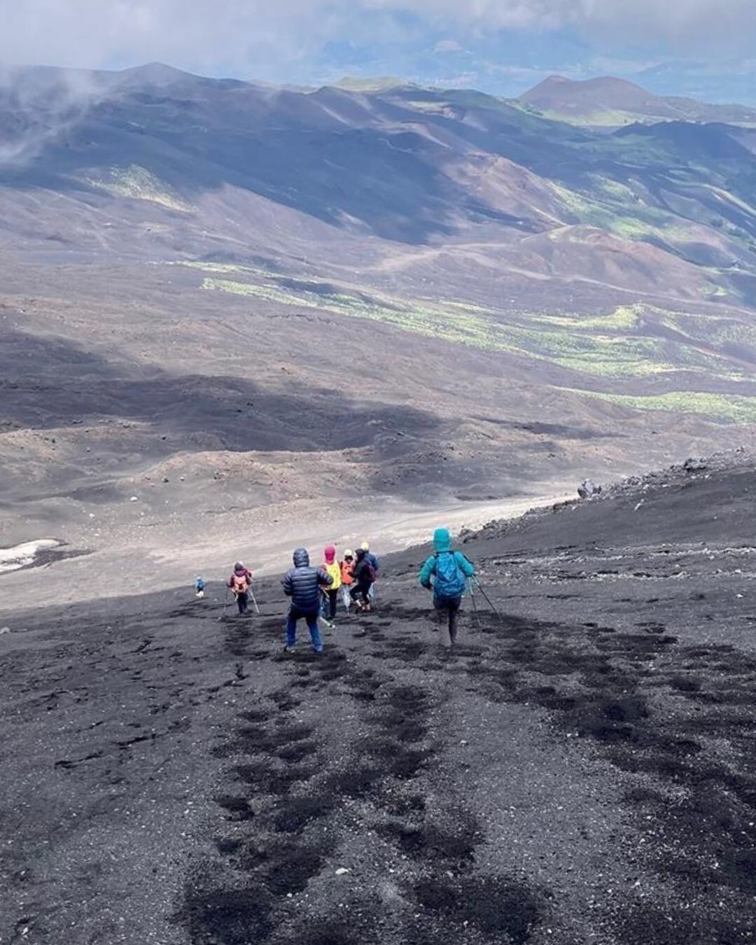 - Vi vandrer igennem Etnas imponerende vulkanlandskab. Igennem bøgeskove og på langs af de sorte tunger af lavastrømme, som er løbet ned gennem bjergsidens bøge og pinjeskov.