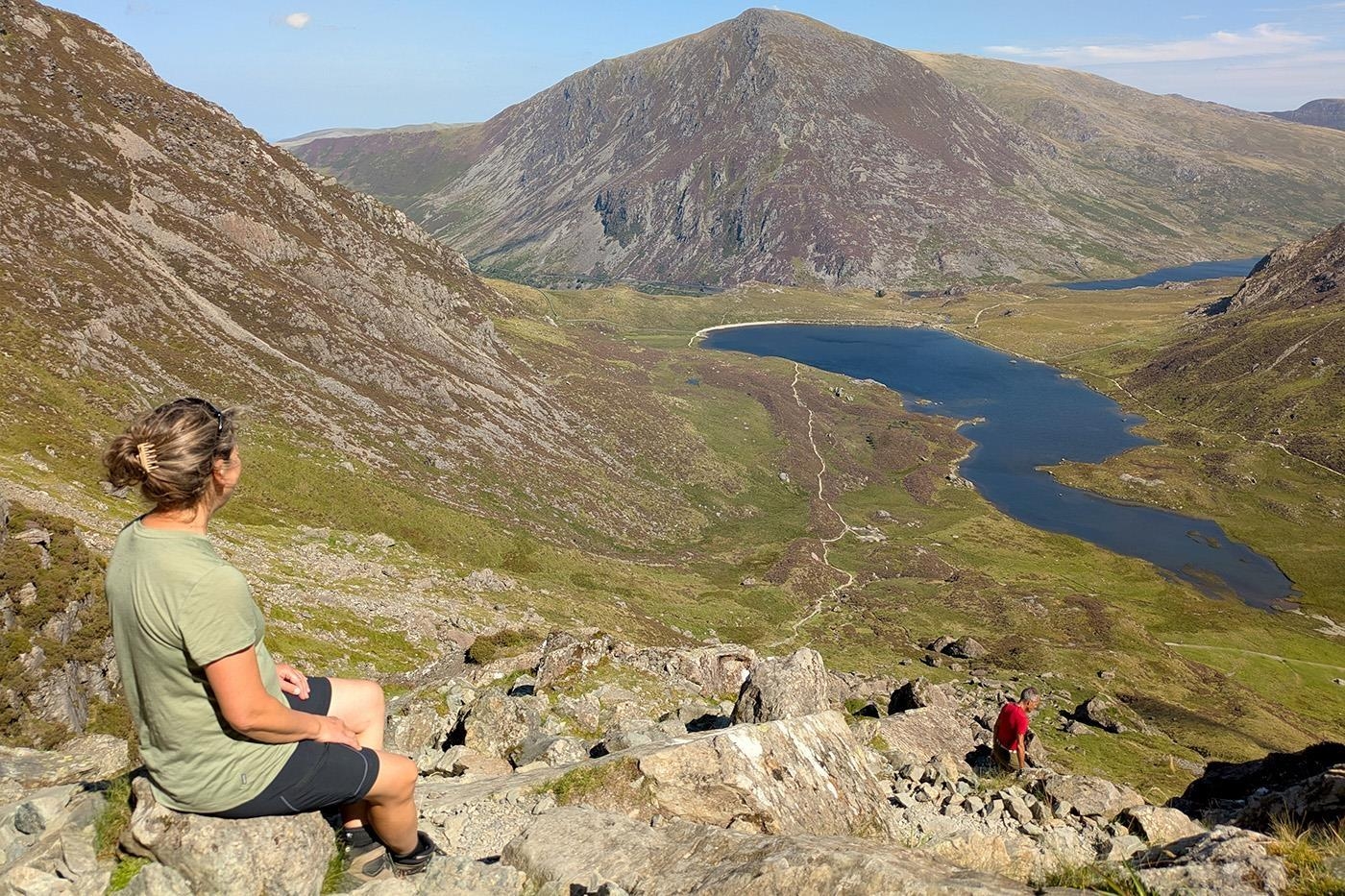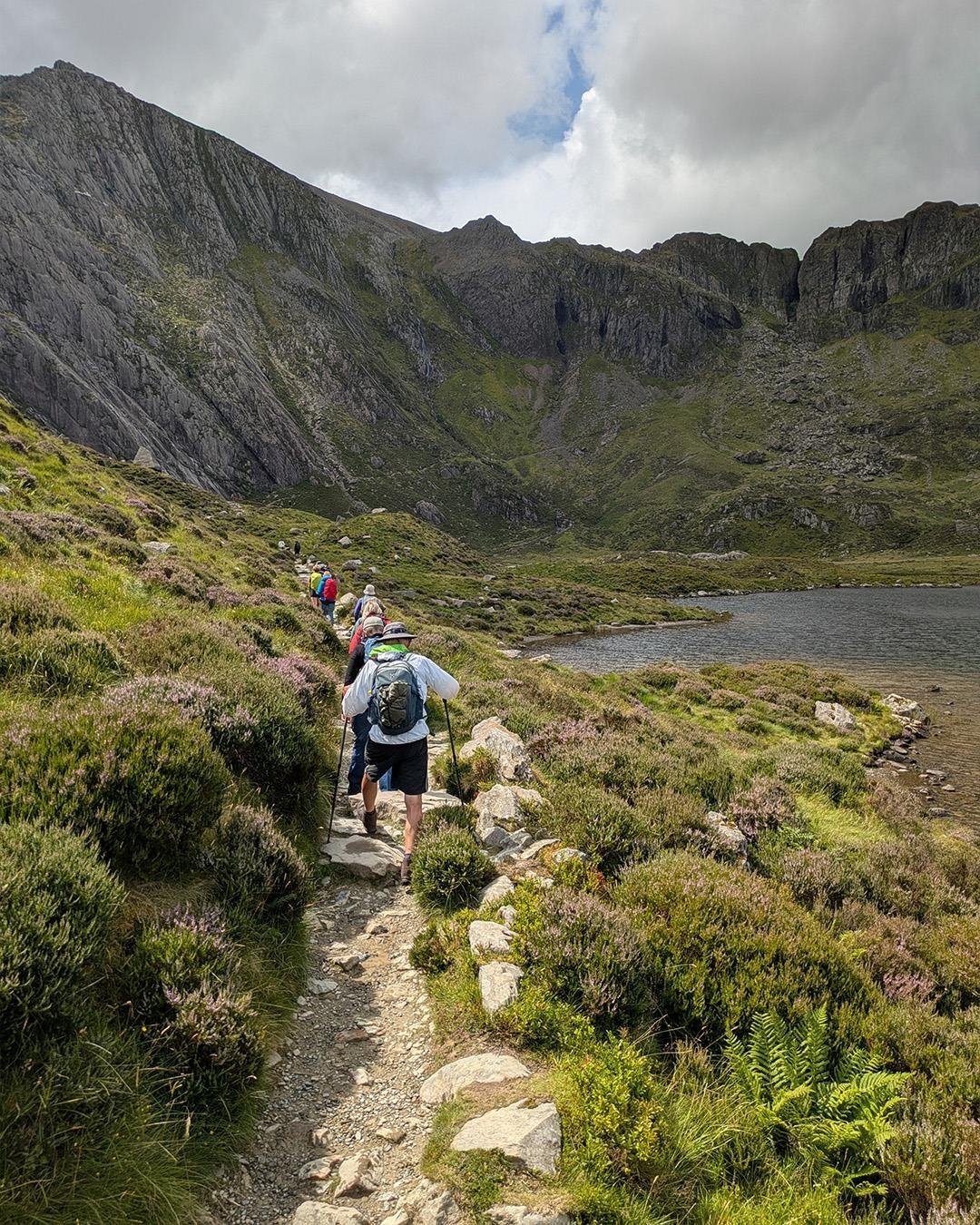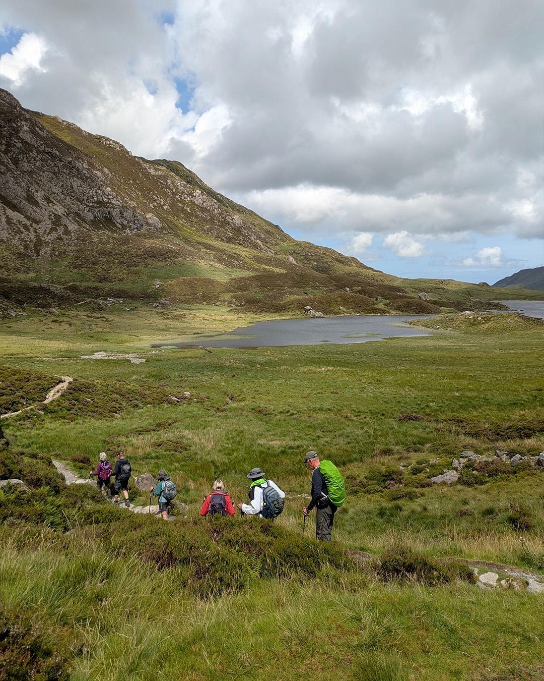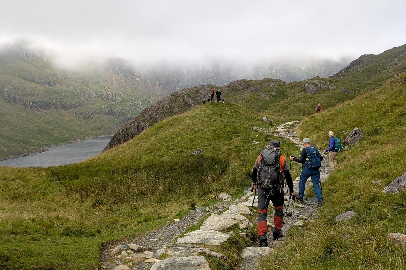 Det tager ca. fire timer at nå toppen af Mt. Snowdon og på opstigningen belønnes vi med udsigt til søerne Llyn Llydaw og Glaslyn, som ligger nedenfor os. Fra toppen går vi ned på Mt. Snowdons modsatte side, via Llanberis ruten, og vi får på den måde set Mt. Snowdon fra to forskellige sider. Llanberis ruten er blandt de lettere, men det er kun kærkomment efter den lidt hårde opstigning og har ingen indflydelse på udsigterne, som er formidable, også på denne side.