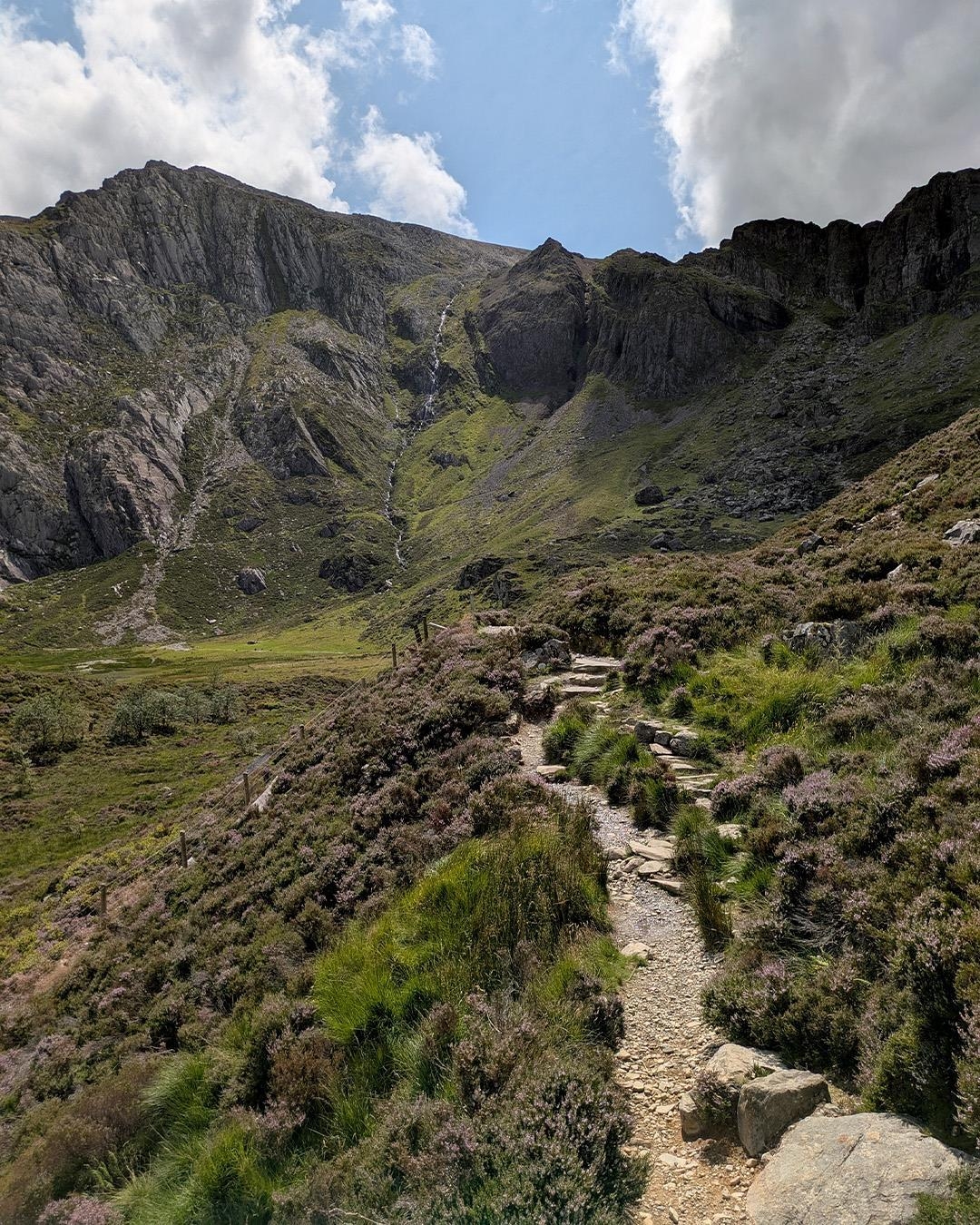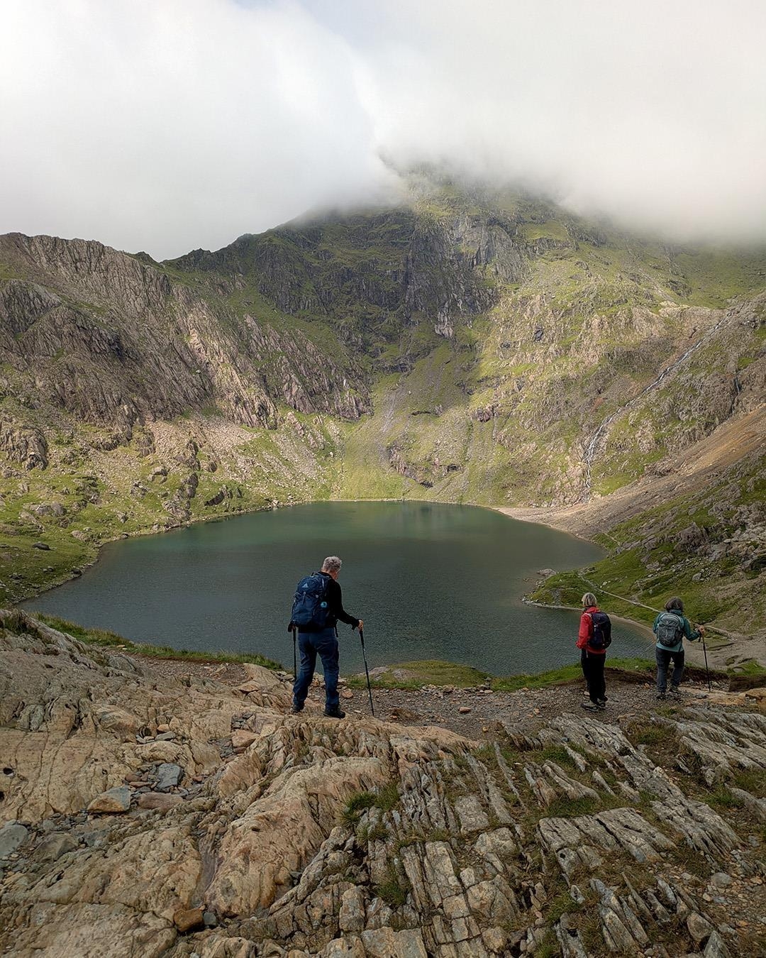 Vores vandring starter netop her, i legendernes vingesus i Ogwen dalen, og går til at starte med rundt om søen, Llyn Ogwen. Vi har udsigt til bjergkæden Glyderau og Llyn Idwal ligger smukt i en gryde af massive, lodrette klipper. De næste timer vandrer vi rundt om søen i dette storslåede terræn. Inde i bunden af gryden deler stien sig, og skulle nogen have mod på en udfordring i form af en let omgang scrambling (hvor man skal bruge hænderne lidt, red.), er det muligt at gå med turlederen op til den berømte klippesprække ’Devils Kitchen’. Igennem den stejle klippesprække fosser et vandfald, og legenden fortæller, at når vandet eller dampen står op fra sprækken, ligner det på afstand røg, hvorfor man sagde, ’at det var djævlen, der kokkererede’.