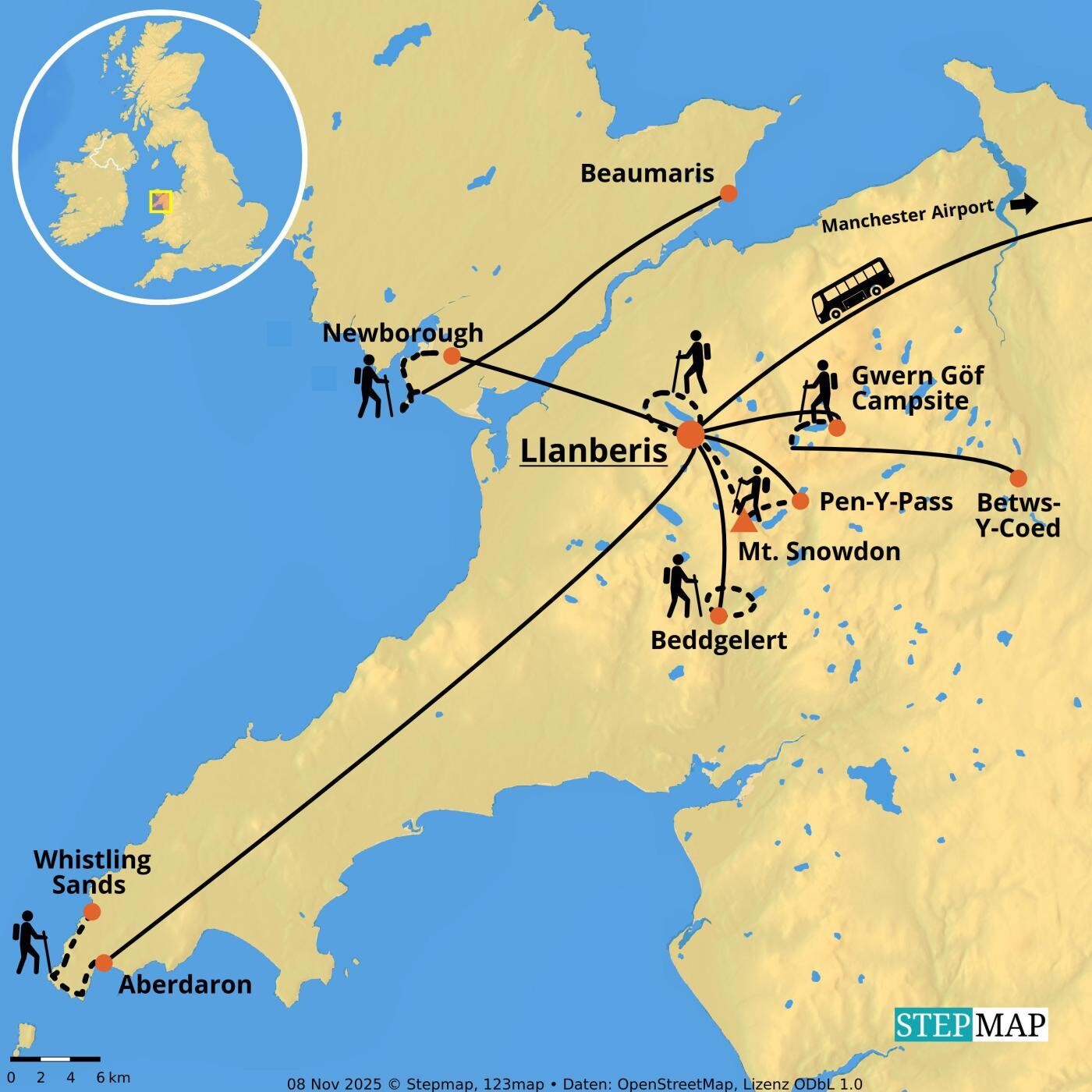 Dag 1. Ankomst til Manchester og med bus til Llanberis, Wales.
